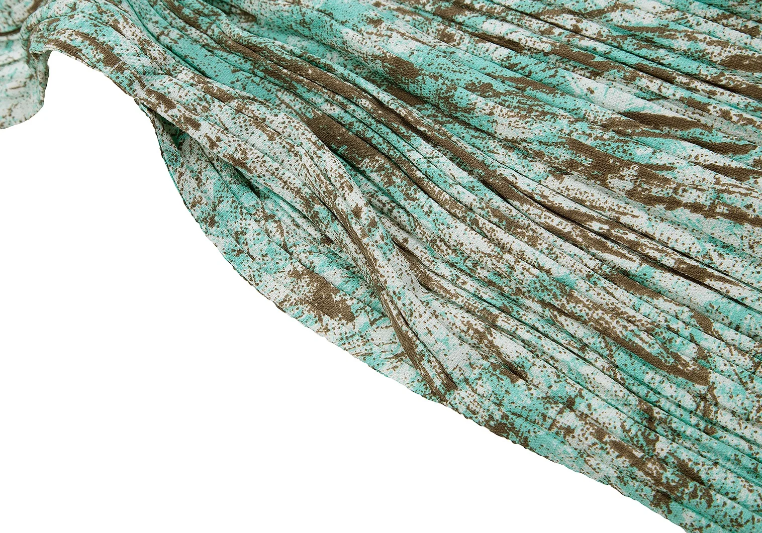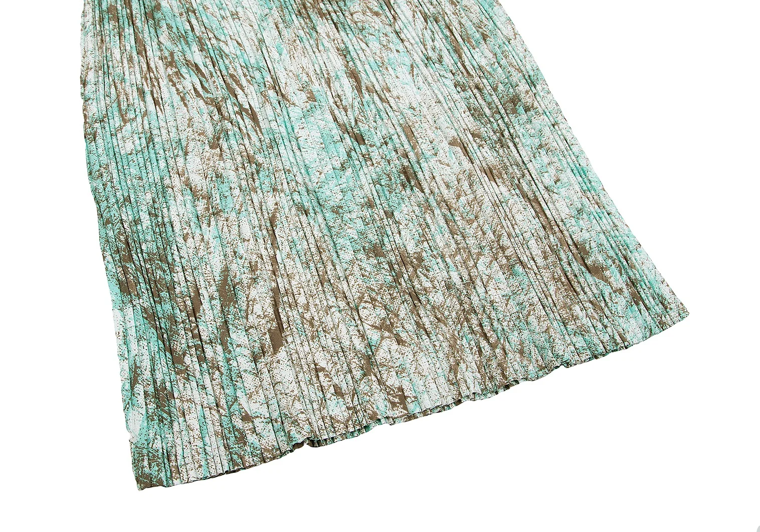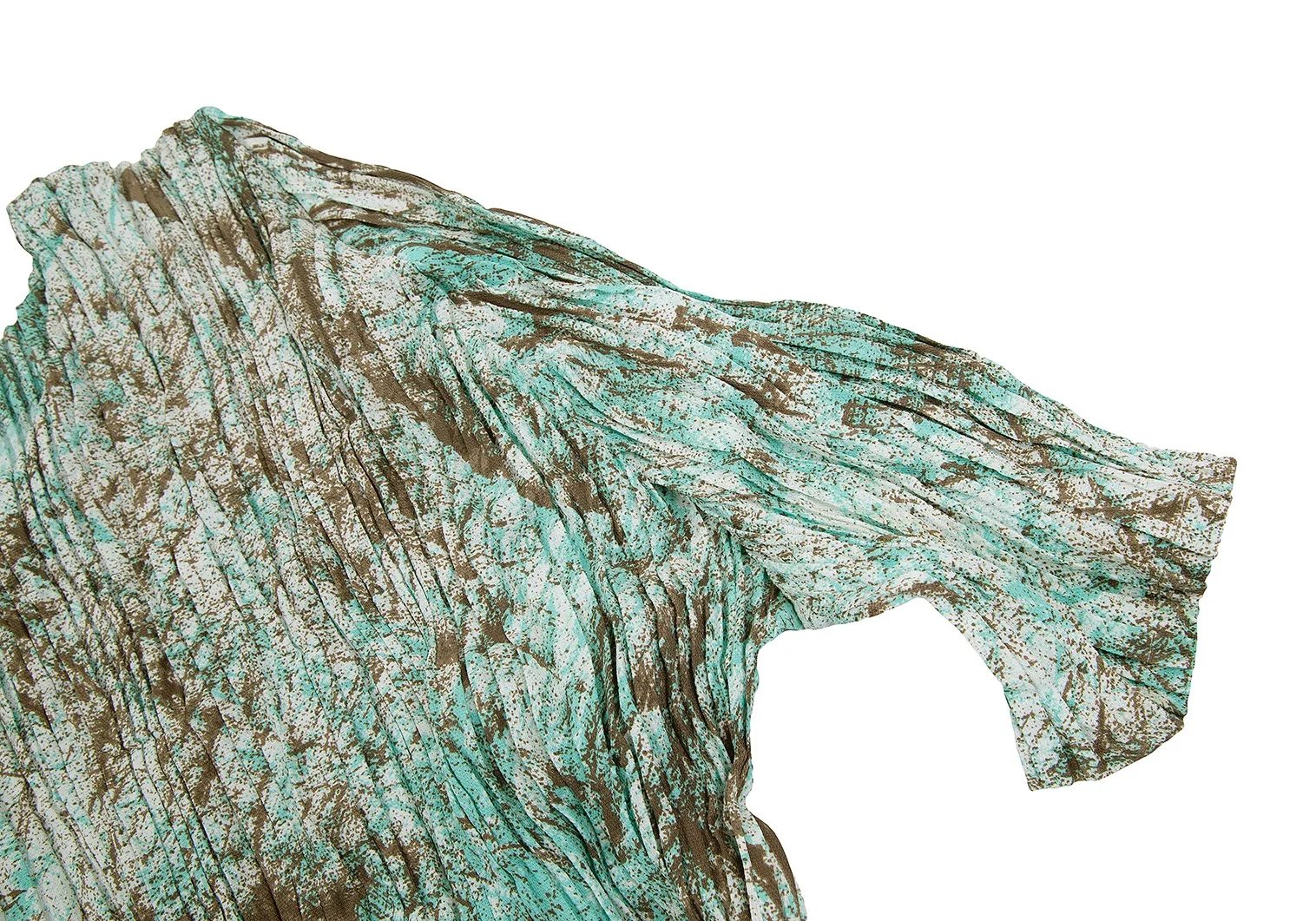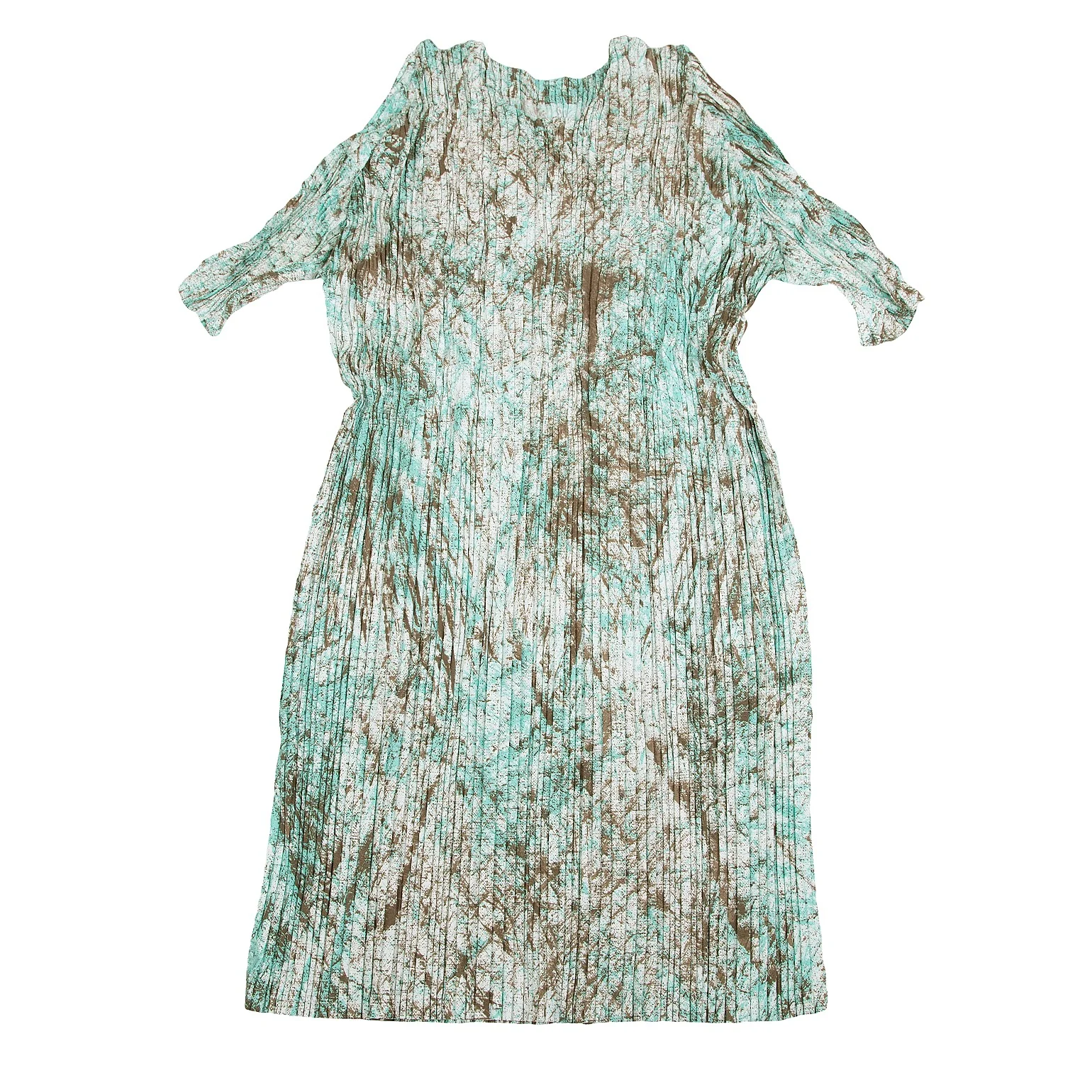 【SALE】イッセイミヤケISSEY MIYAKE シワプリーツペイント5分袖ワンピース 茶青2