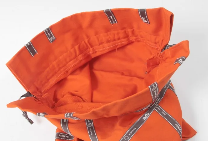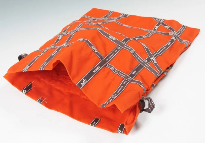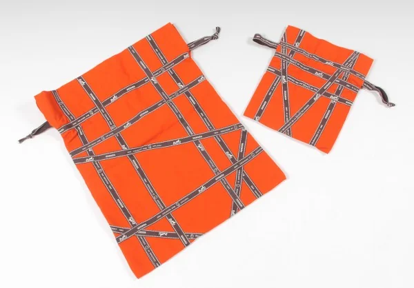 エルメス生地HERMES 手作り巾着袋セット オレンジ大 32×39 小 18×21 cm