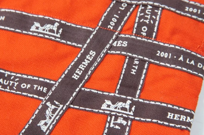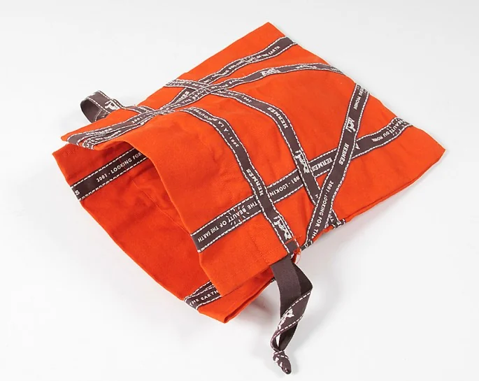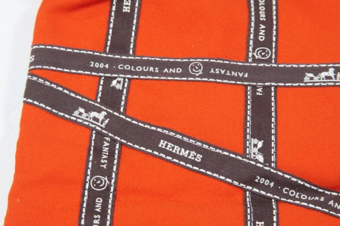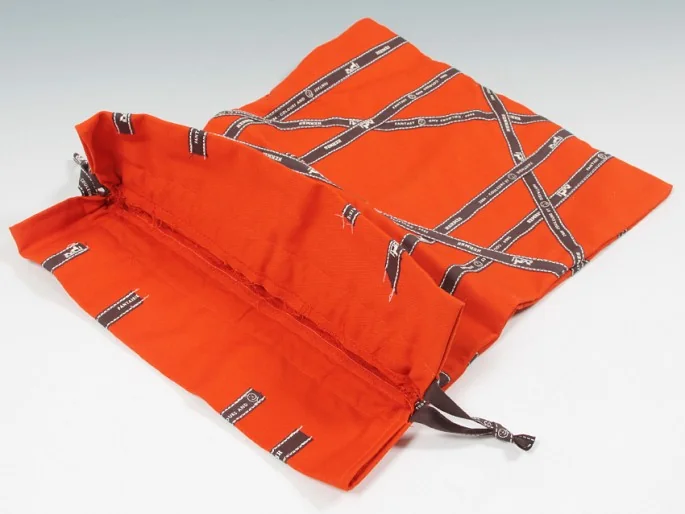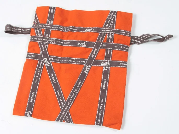 エルメスの生地、テープで作った巾着になります。メーカーから発売された物ではございません。未使用品になります。