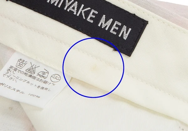 2001S/S コレクション着用アイテムです。前ウエストに汚れ、ウエスト裏にシミがあります(画像参照)。その他目立ったシミ、汚れ、ほつれ等なくいい状態です。クリーニング済み