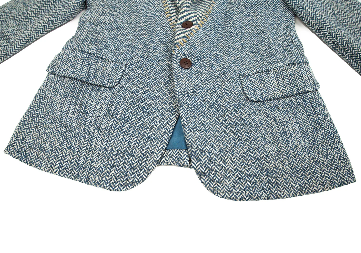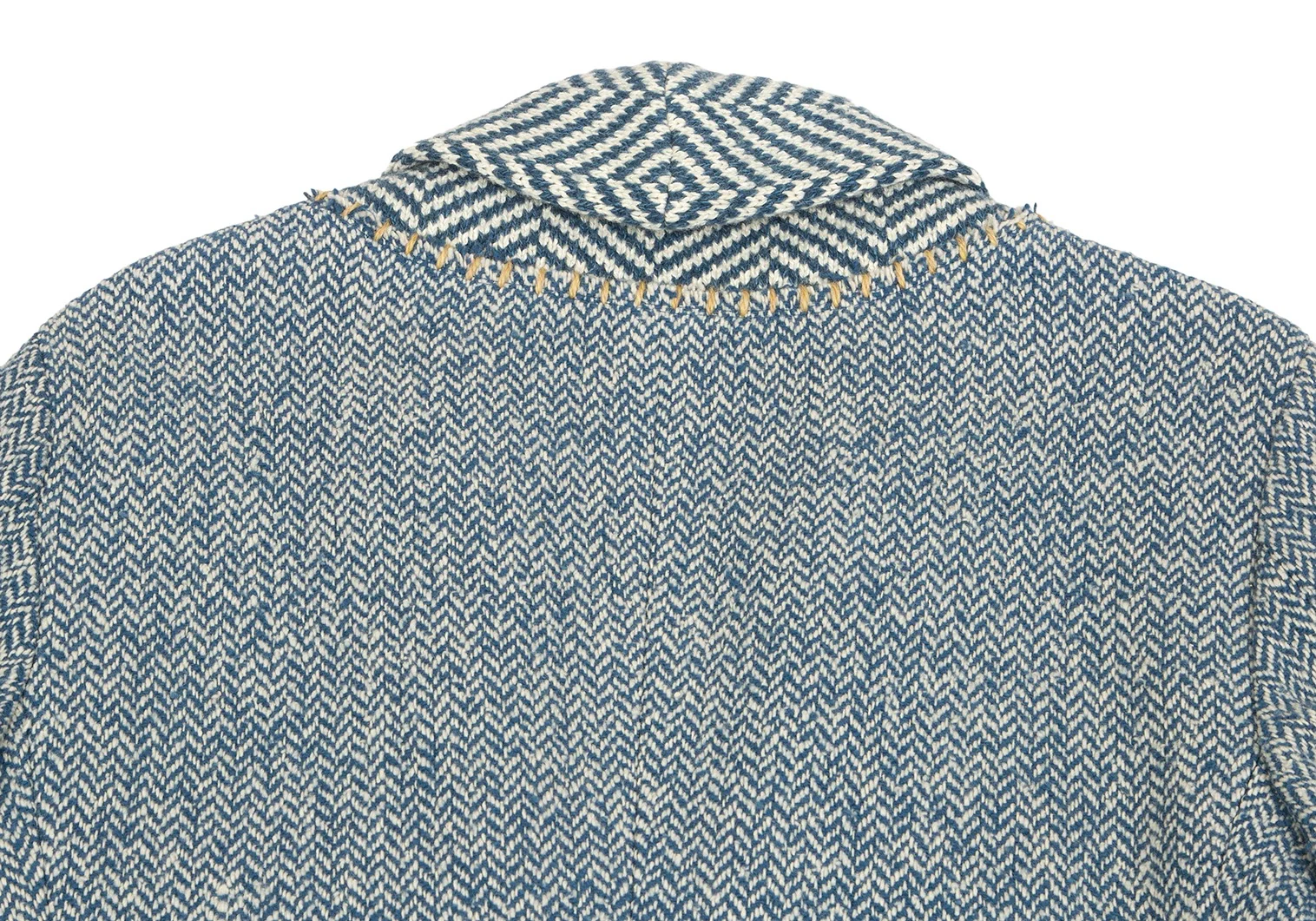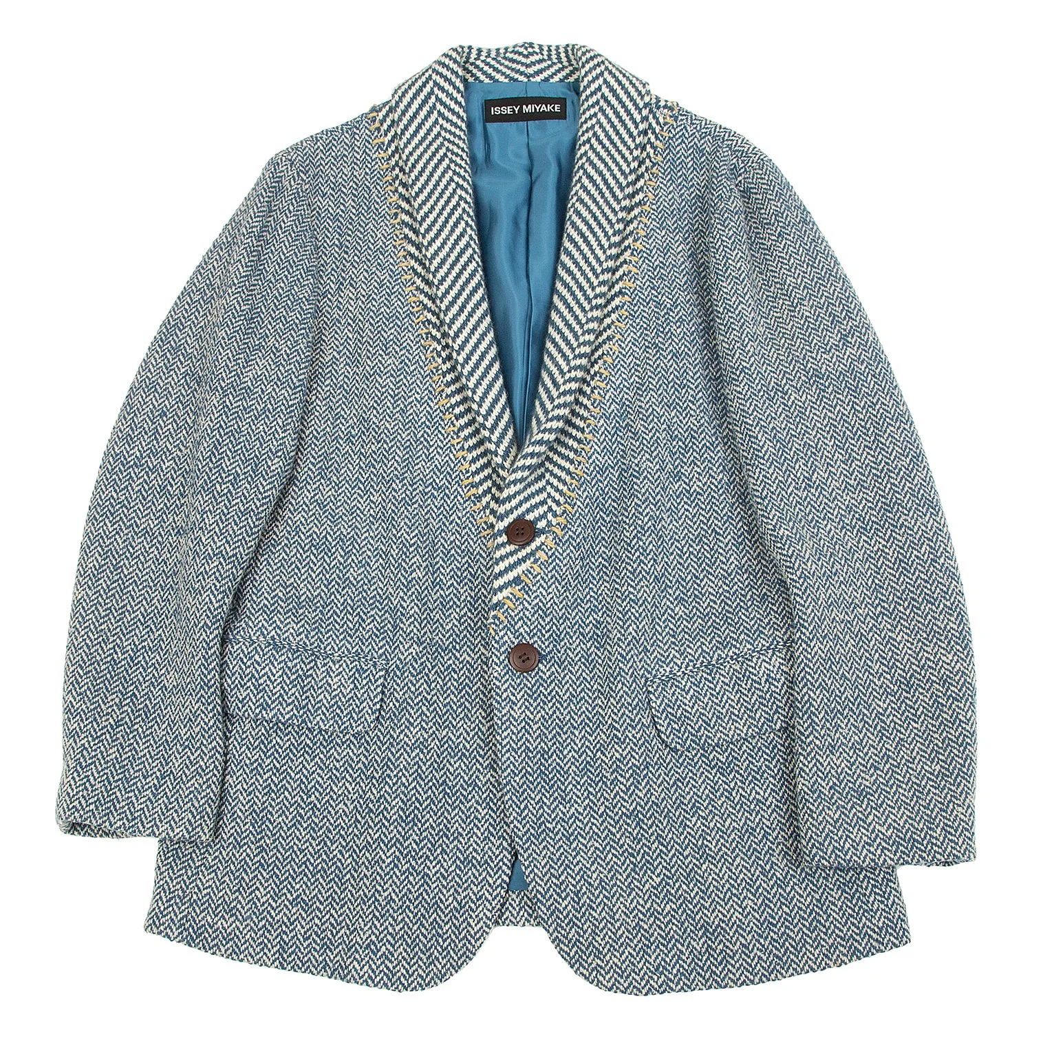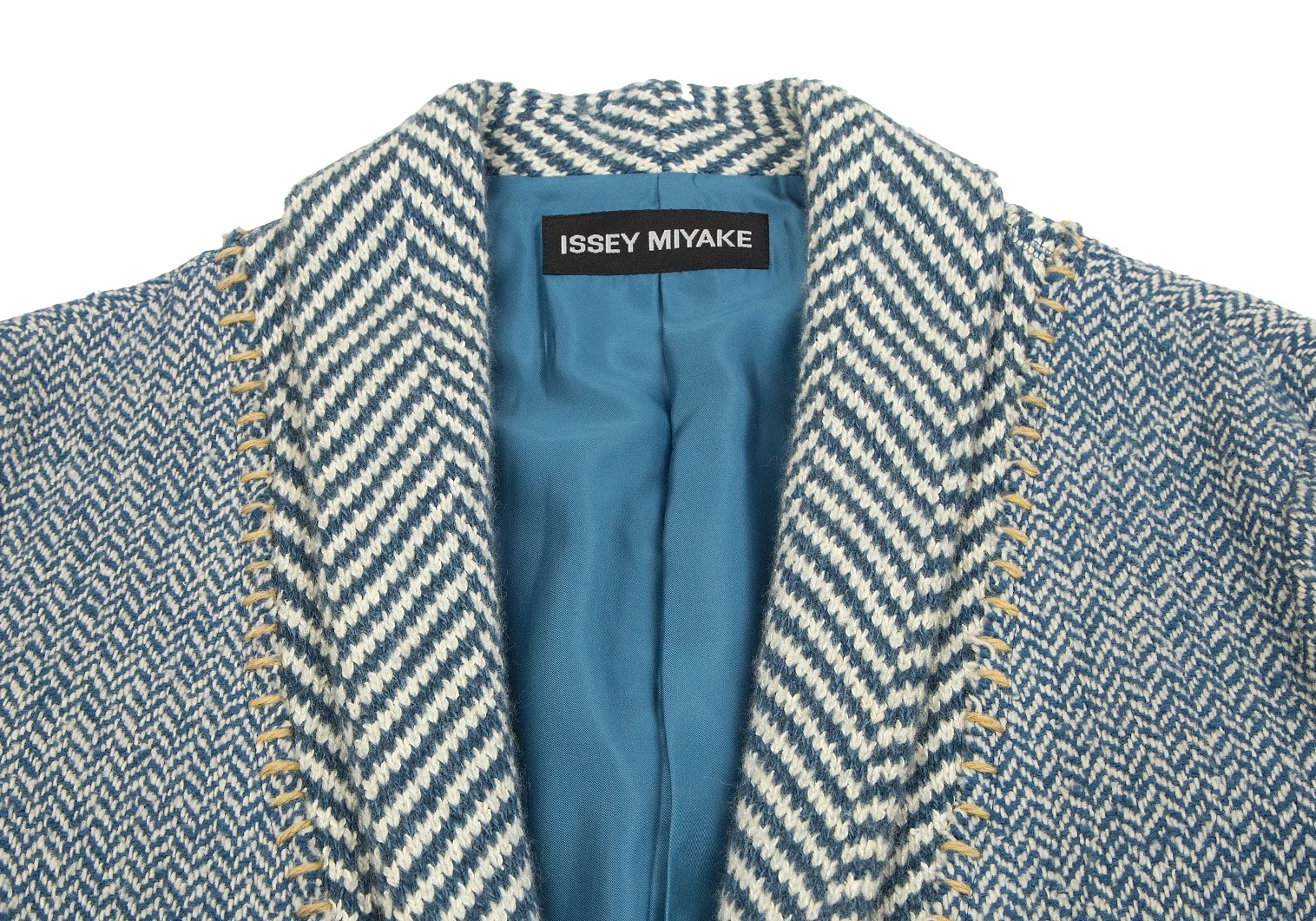 【SALE】イッセイミヤケ ISSEY MIYAKE ツィードステッチヘリンボーンショールカラージャケット 青2