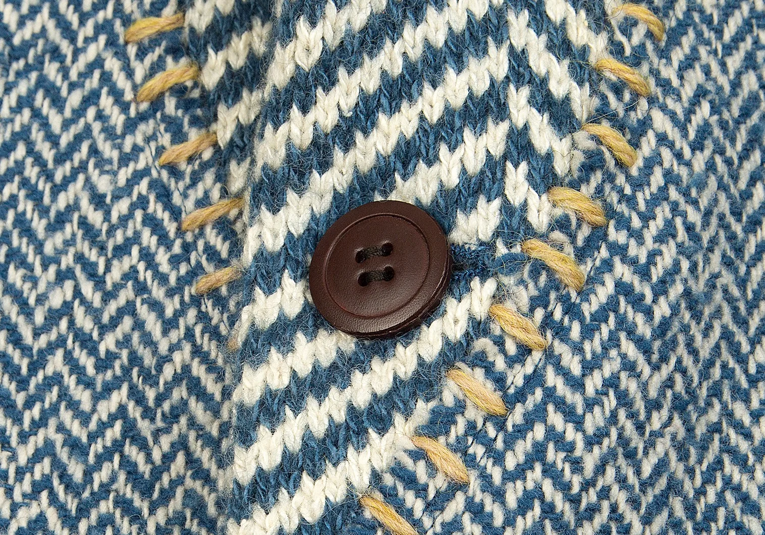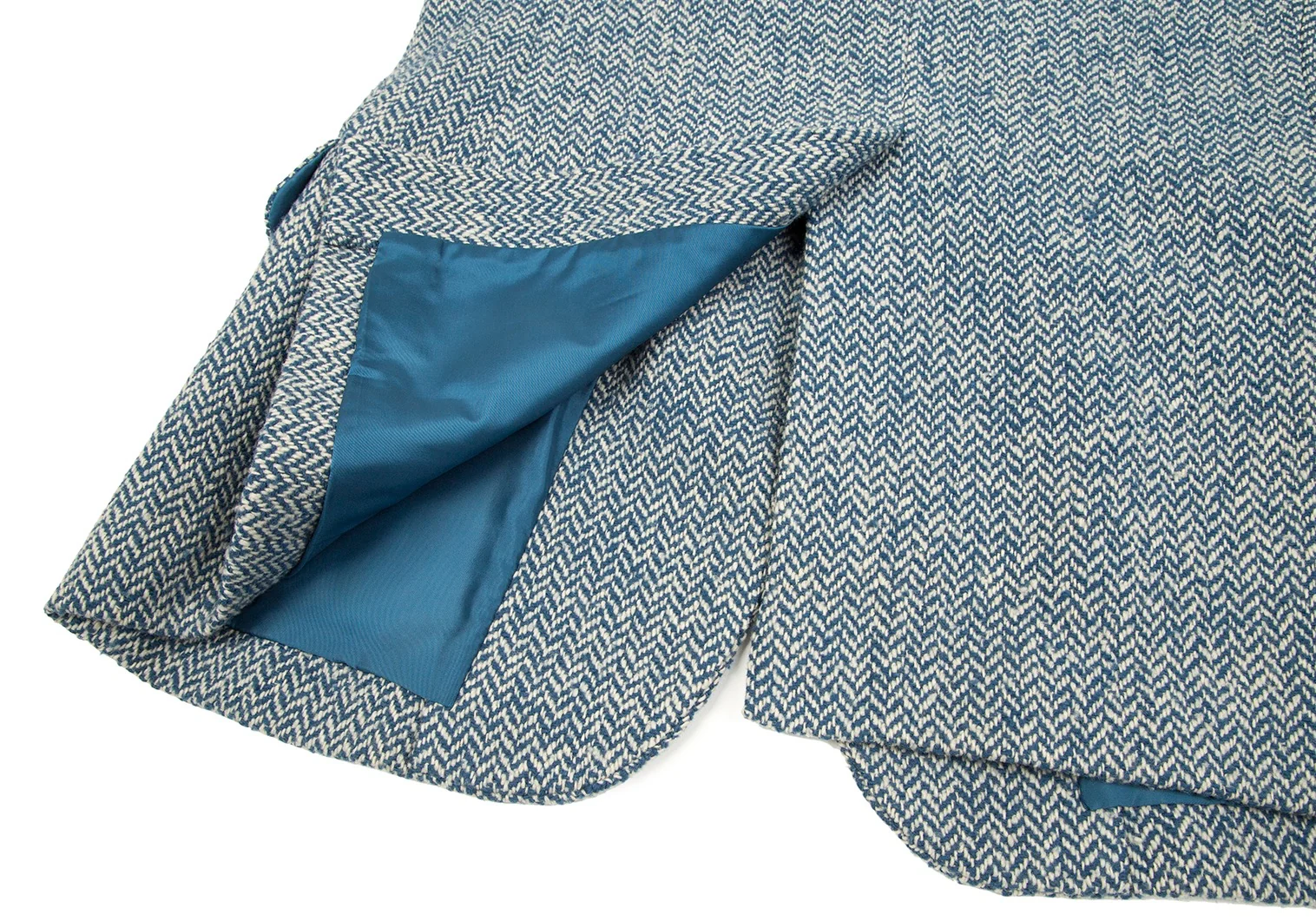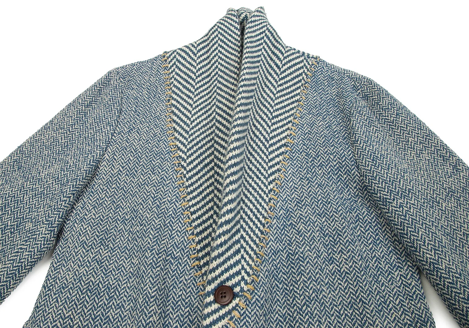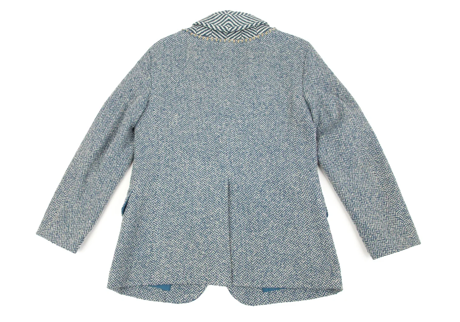 【SALE】イッセイミヤケ ISSEY MIYAKE ツィードステッチヘリンボーンショールカラージャケット 青2