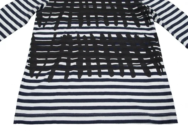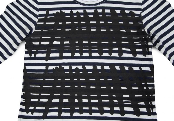 コムデギャルソンCOMME des GARCONS グラフィックプリントボーダー長袖Tシャツ 紺白黒SS