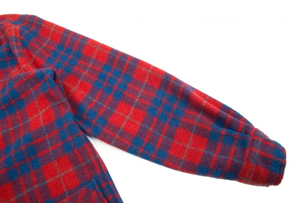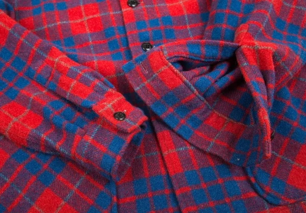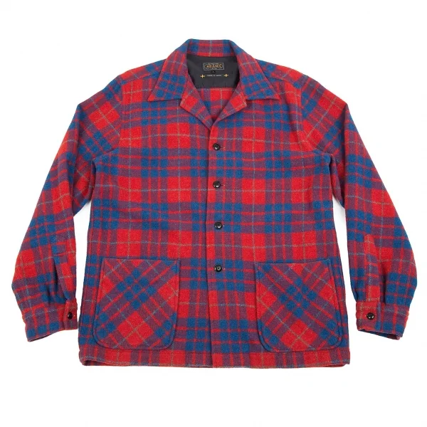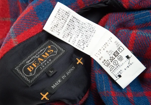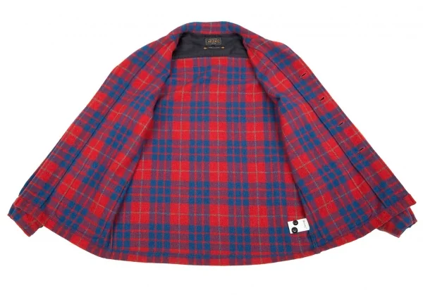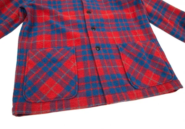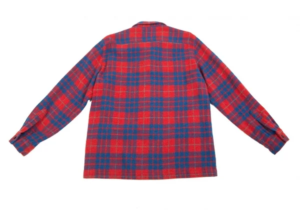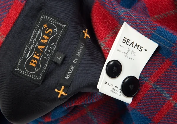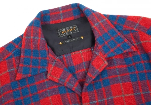 ビームスプラスBEAMS PLUS ウールナイロンチェックシャツジャケット 赤青L