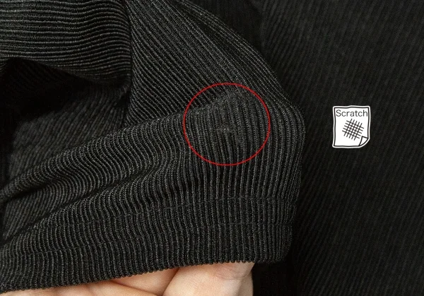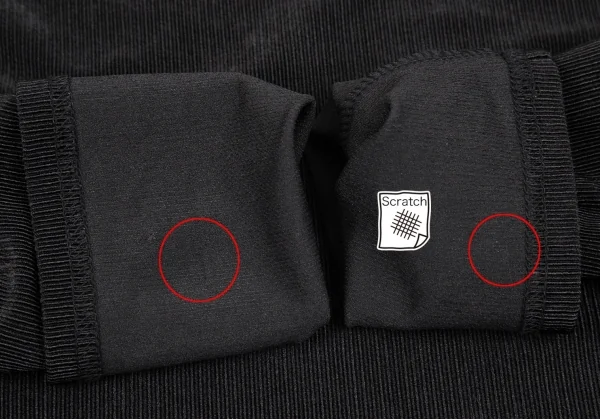 ブランドタグがありません。右袖に引っ掛けがあります。袖裏にスレがあります(画像参照)。その他に目立ったシミ、汚れ、ほつれ等ありません。クリーニング済み