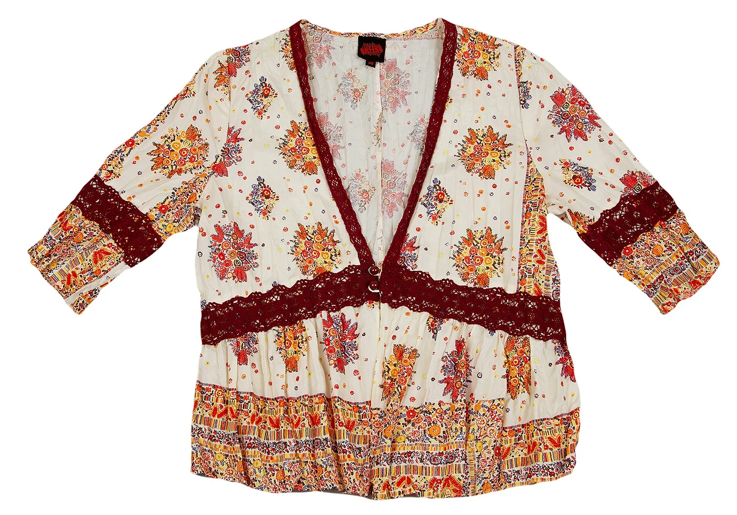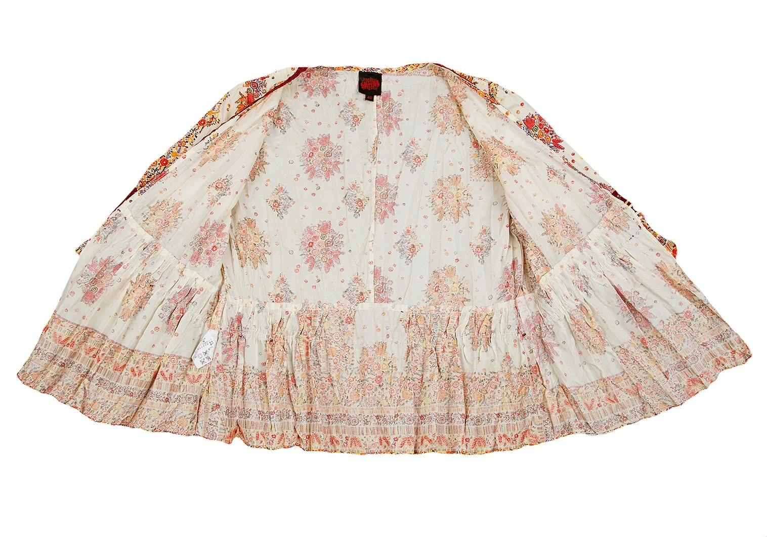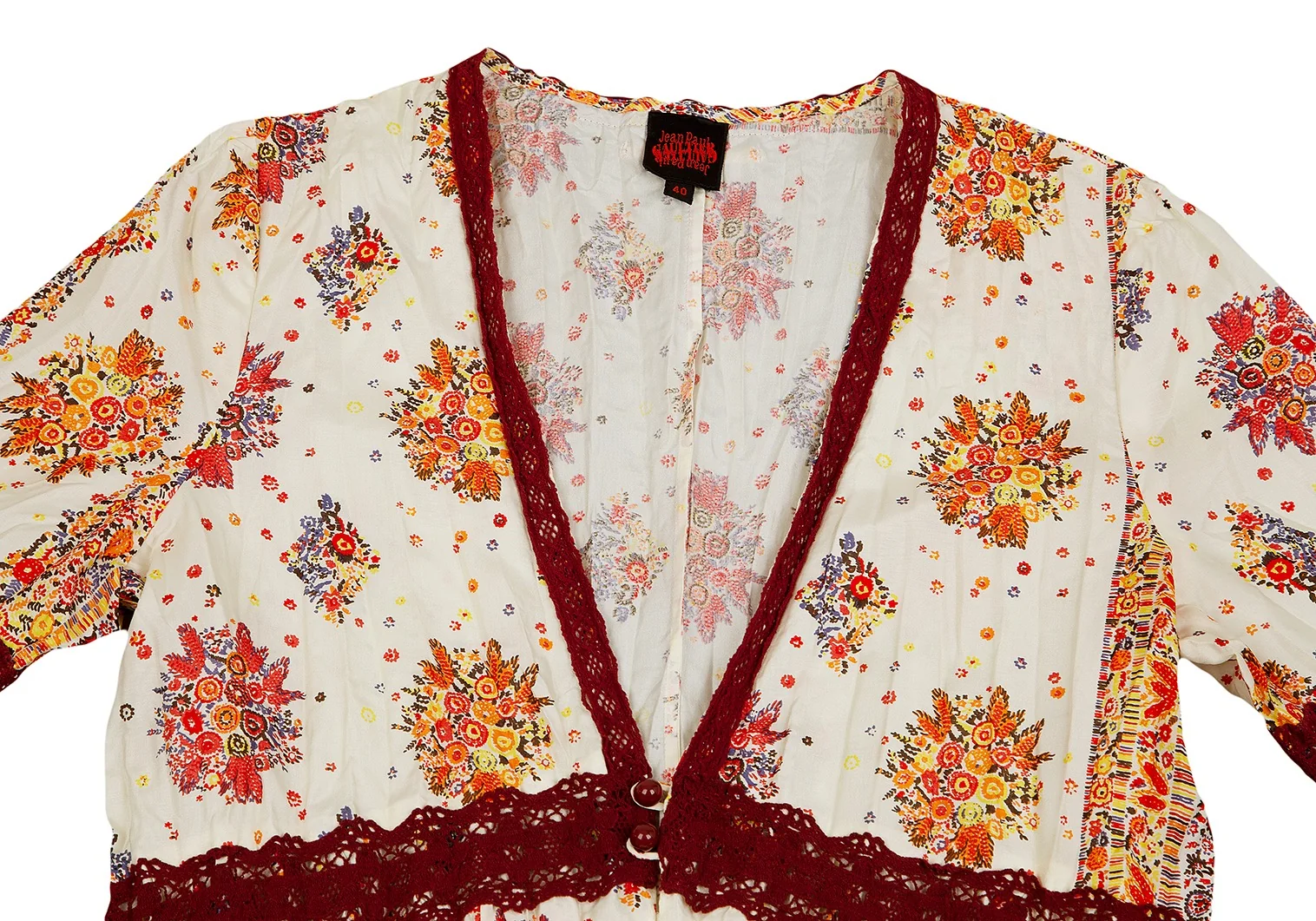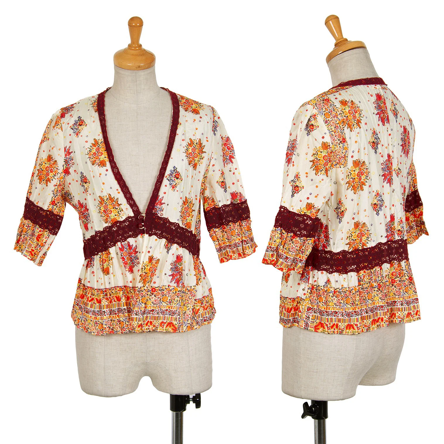 【SALE】ジャンポールゴルチエJean Paul GAULTIER シワ加工フラワープリントカーディガン クリームエンジ40