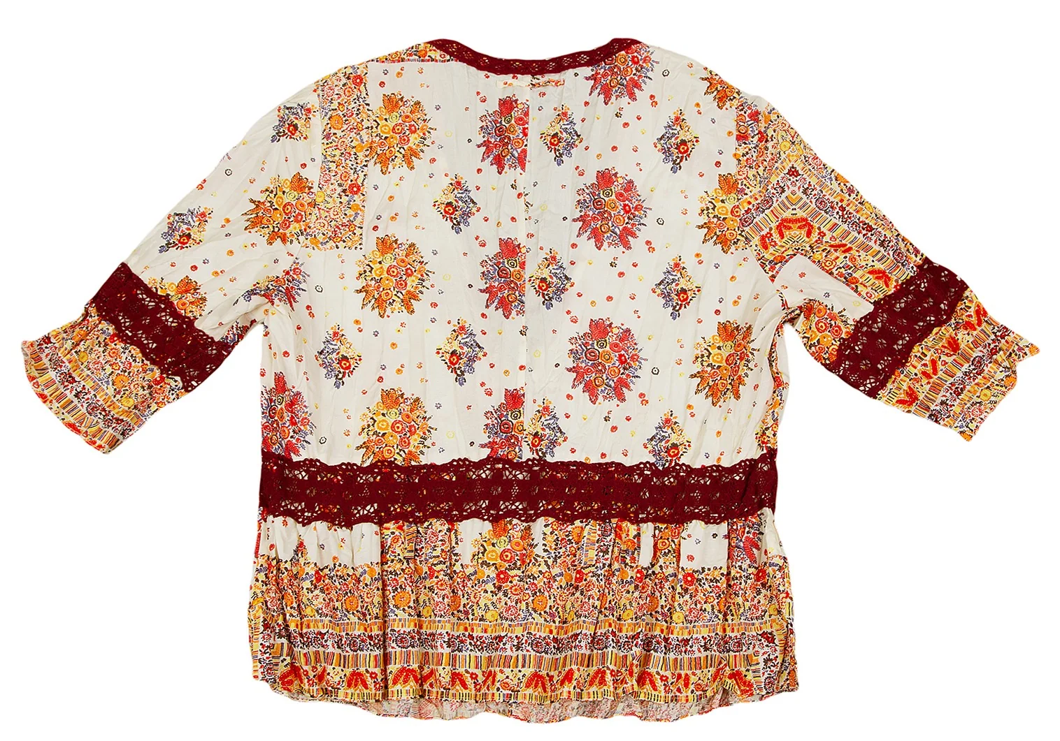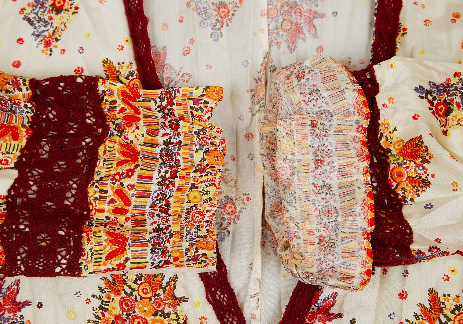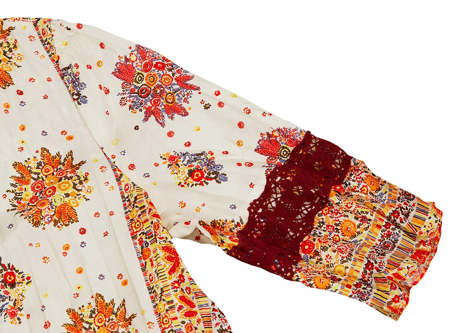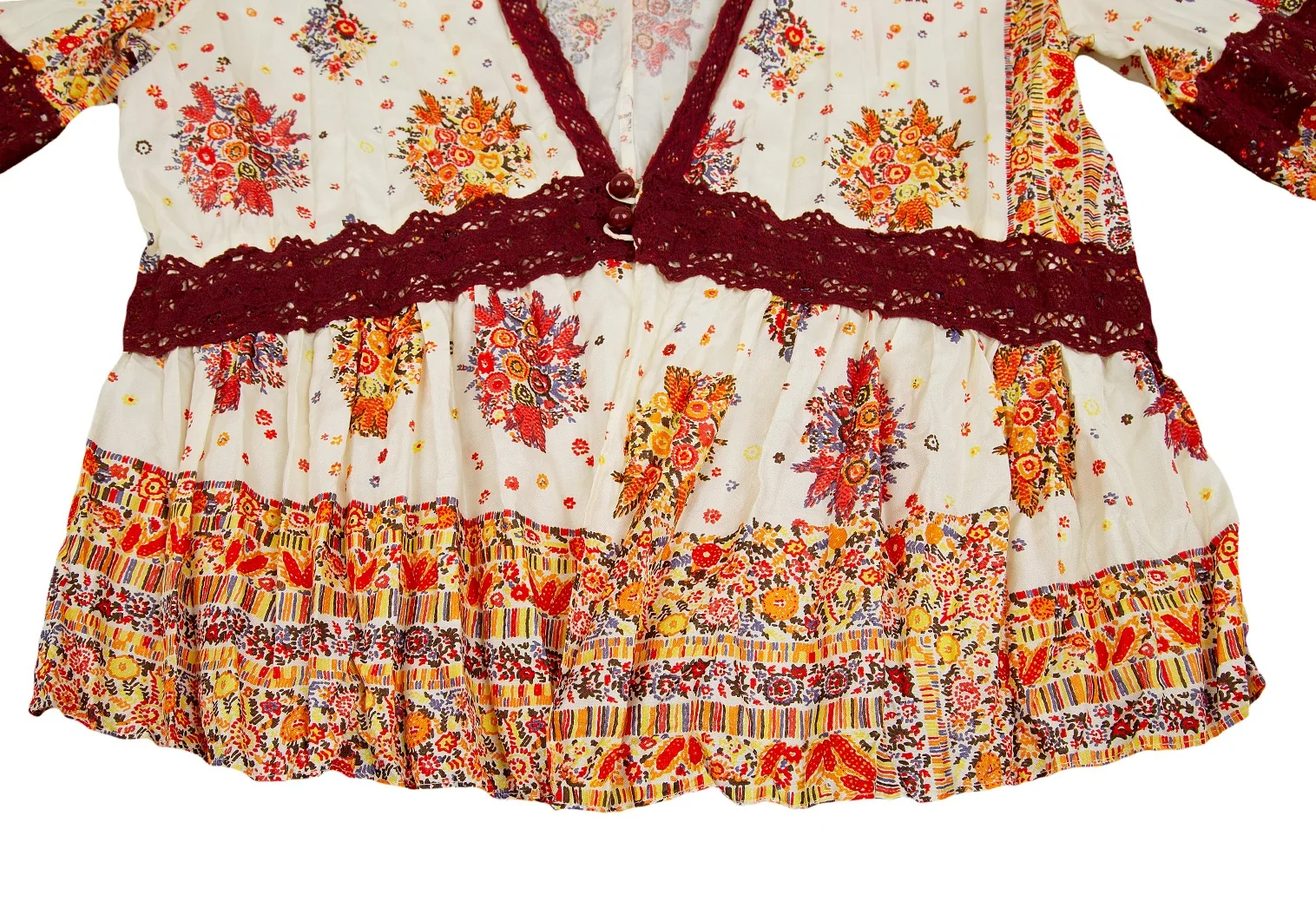 【SALE】ジャンポールゴルチエJean Paul GAULTIER シワ加工フラワープリントカーディガン クリームエンジ40