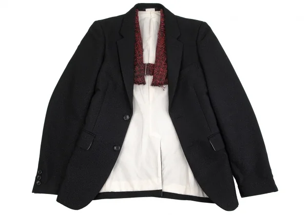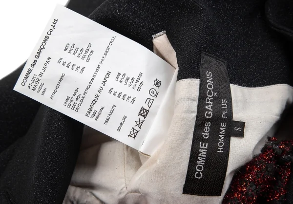 コムデギャルソン オムプリュスCOMME des GARCONS HOMME PLUS ハーネスジレレイヤードグリッタージャケット 黒赤ラメS