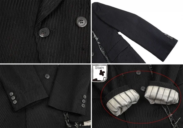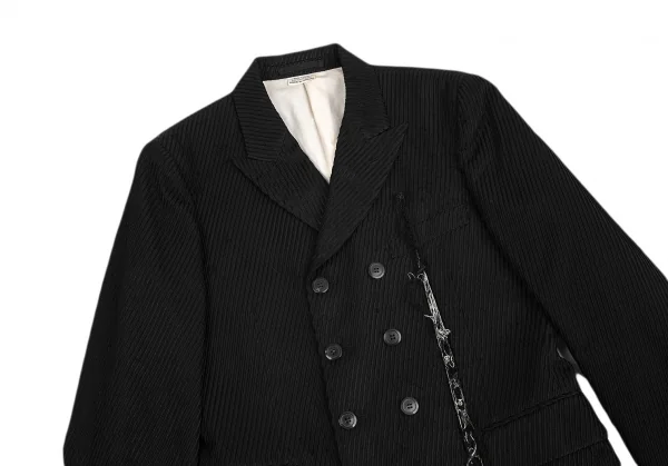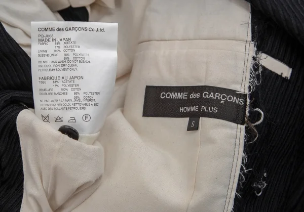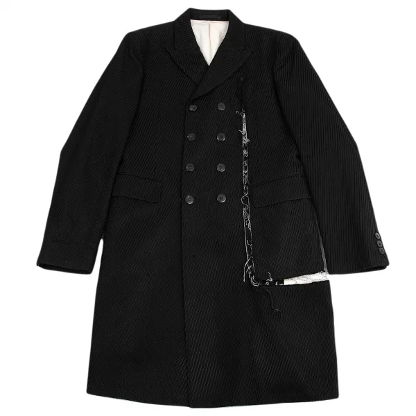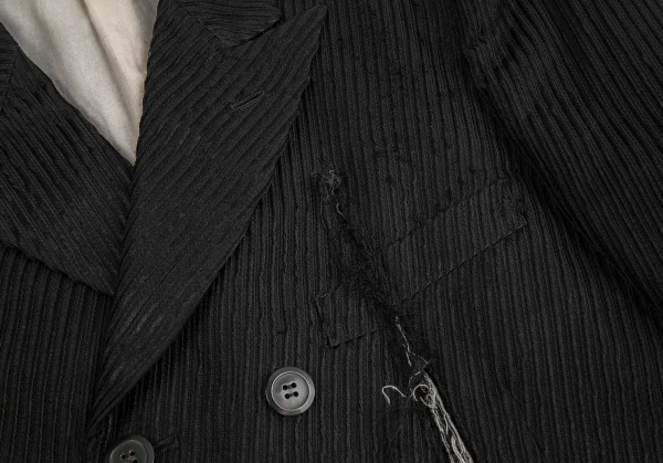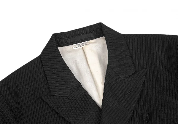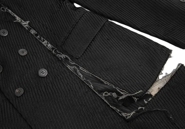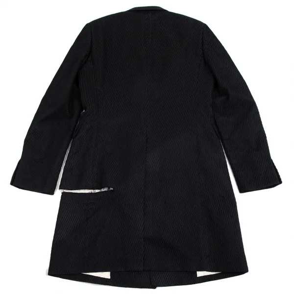 コムデギャルソン オムプリュスCOMME des GARCONS HOMME PLUS ストライプ織りバイアス使いカットオフロングジャケット 黒S