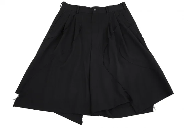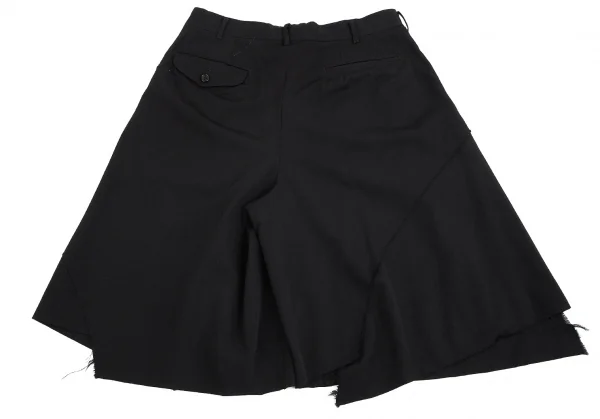 コムデギャルソン オムプリュスCOMME des GARCONS HOMME PLUS ウールギャバカーブ裁ち切り替えフレアハーフパンツ 黒S