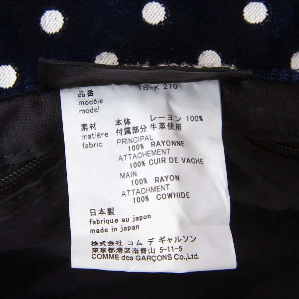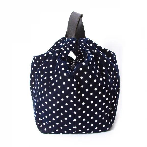 トリココムデギャルソンtricot COMME des GARCONS ベロアドットプリントハンドバッグ 紺白
