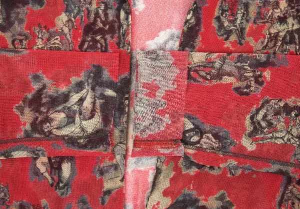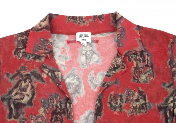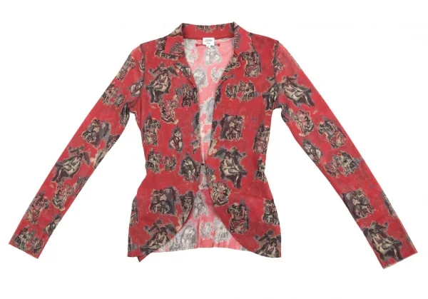 【SALE】ジャンポールゴルチエ ファムJean Paul GAULTIER FEMME ウーマンプリントパワーネットベルトジャケット 赤茶40