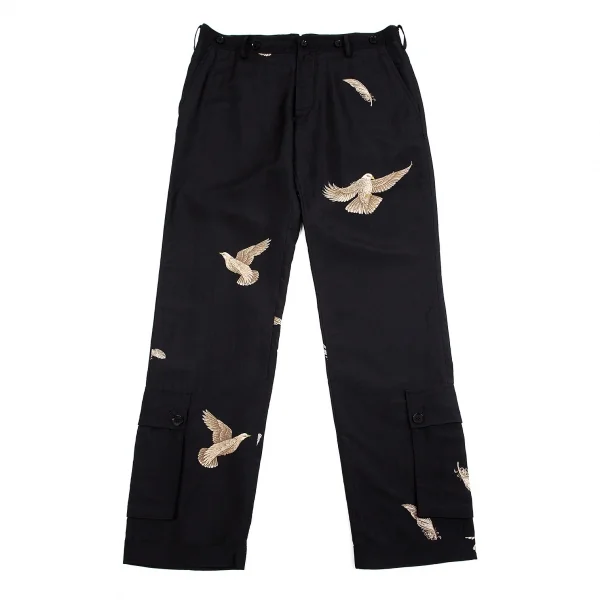 ヨウジヤマモトプールオムYohji Yamamoto pour homme 鳩プリントシルクカーゴパンツ 黒3位