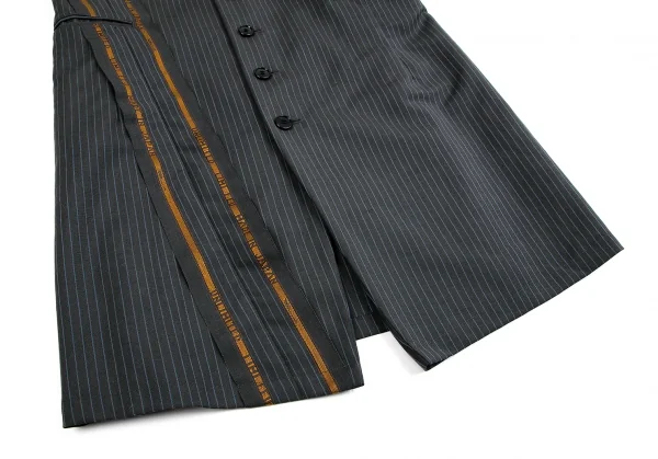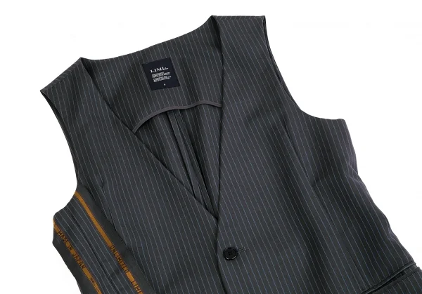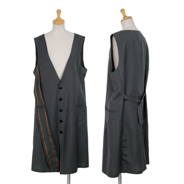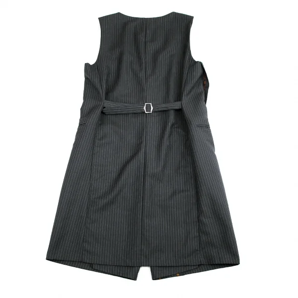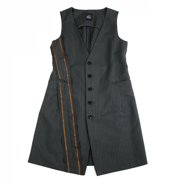 リミフゥLIMI feu ストライプスーツ地デザインウールロングベスト グレーS