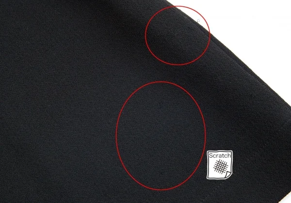 両サイド裾に引っ掛けが多数あります(画像参照)。その他目立ったシミ、汚れ、ほつれ等なくいい状態です。クリーニング済み