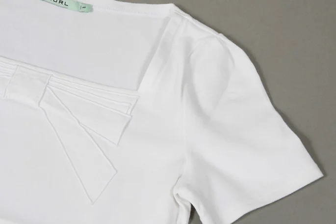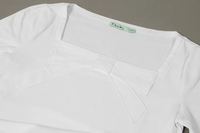 エフガールFGURL 半袖リボンストレッチカットソー 白40