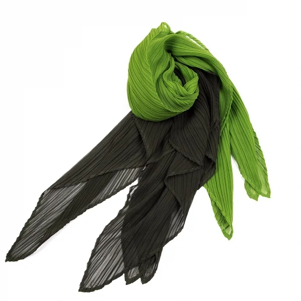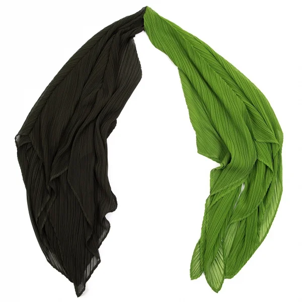 プリーツプリーズPLEATS PLEASE ツートングリーンレイヤープリーツスカーフ 緑