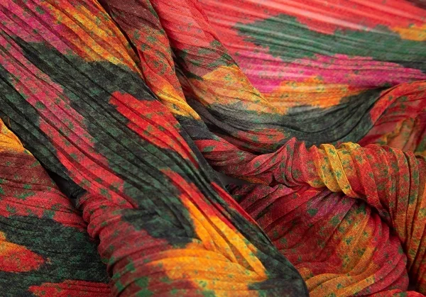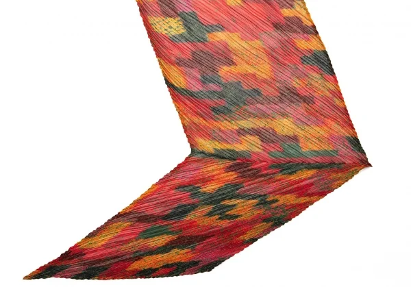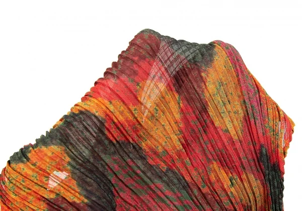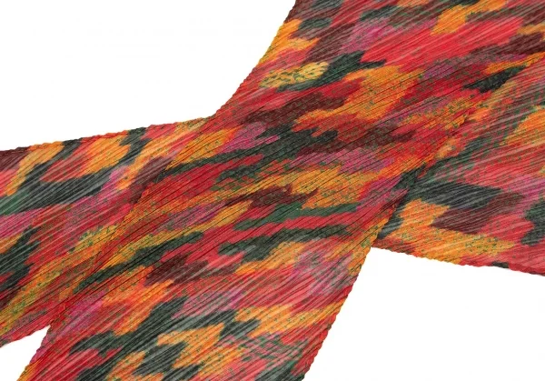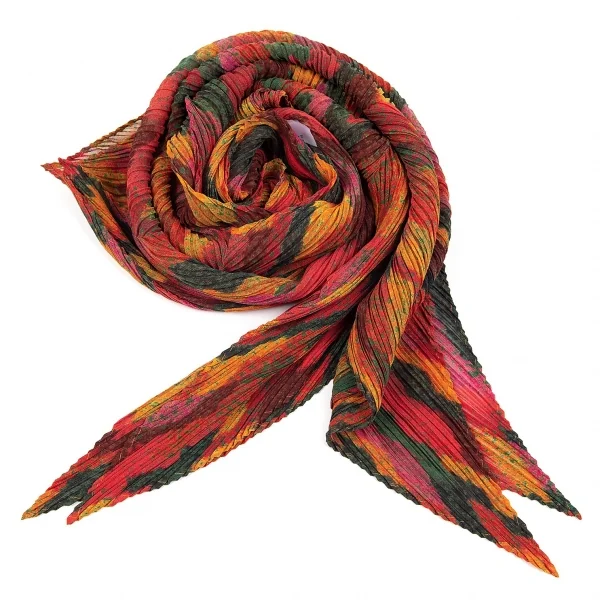 プリーツプリーズPLEATS PLEASE プリントデザインプリーツスカーフ 赤