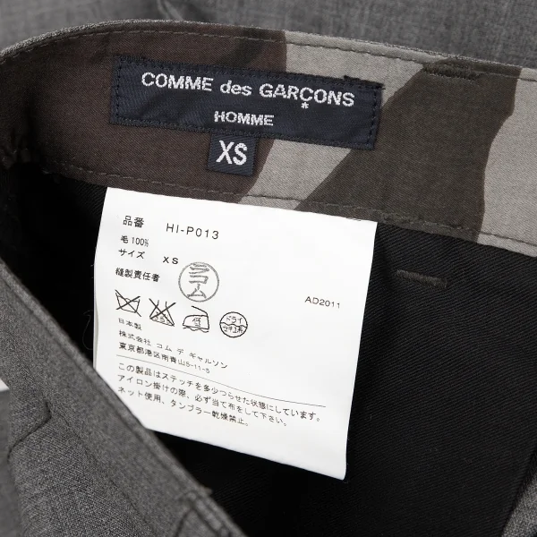 コムデギャルソン オムCOMME des GARCONS HOMME ウールコットンパッカリングパンツ グレーXS