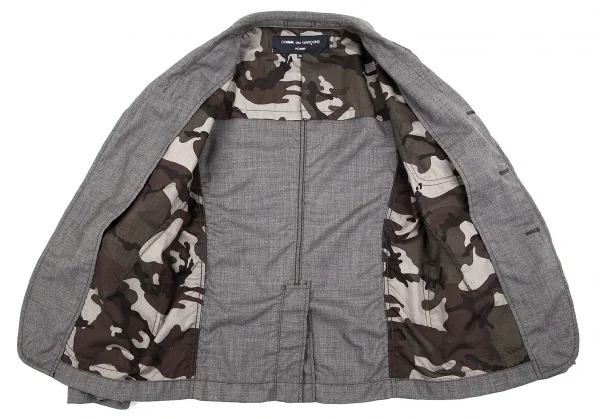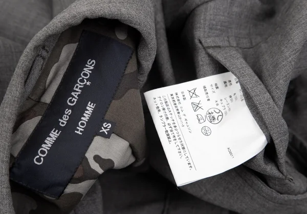 コムデギャルソン オムCOMME des GARCONS HOMME 裏カモフラウールコットンパッカリングセットアップ グレーXS