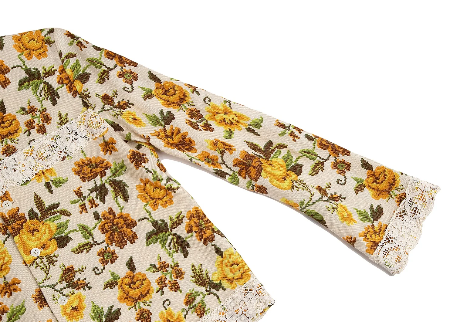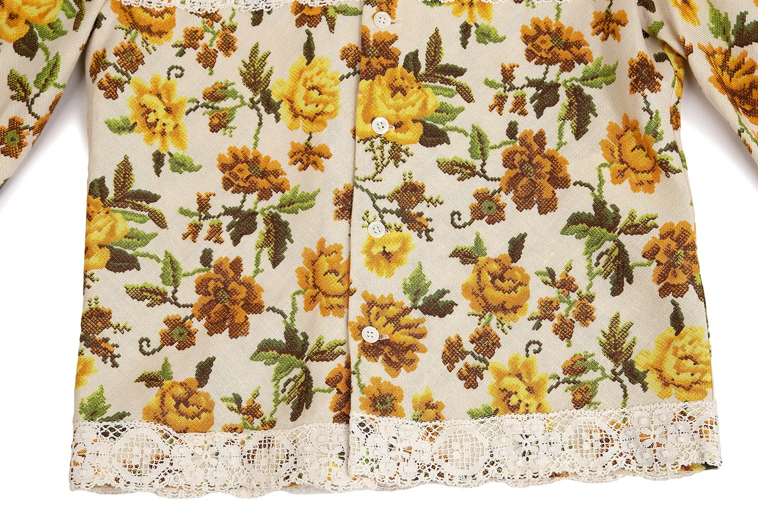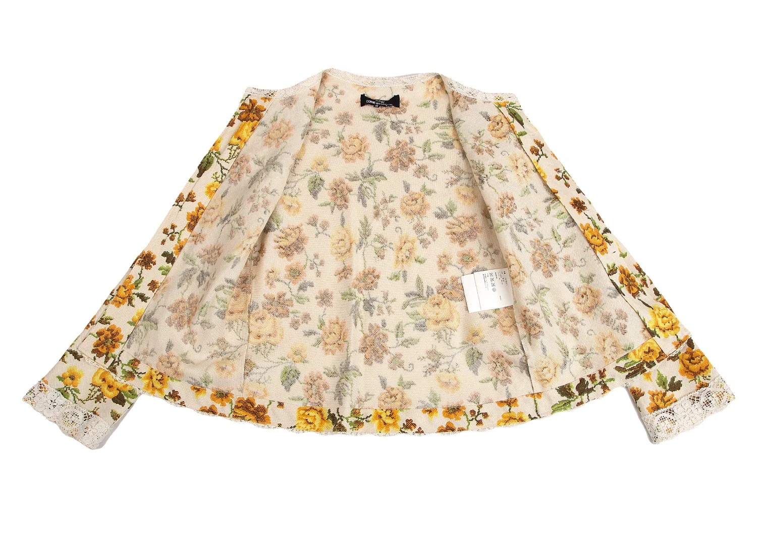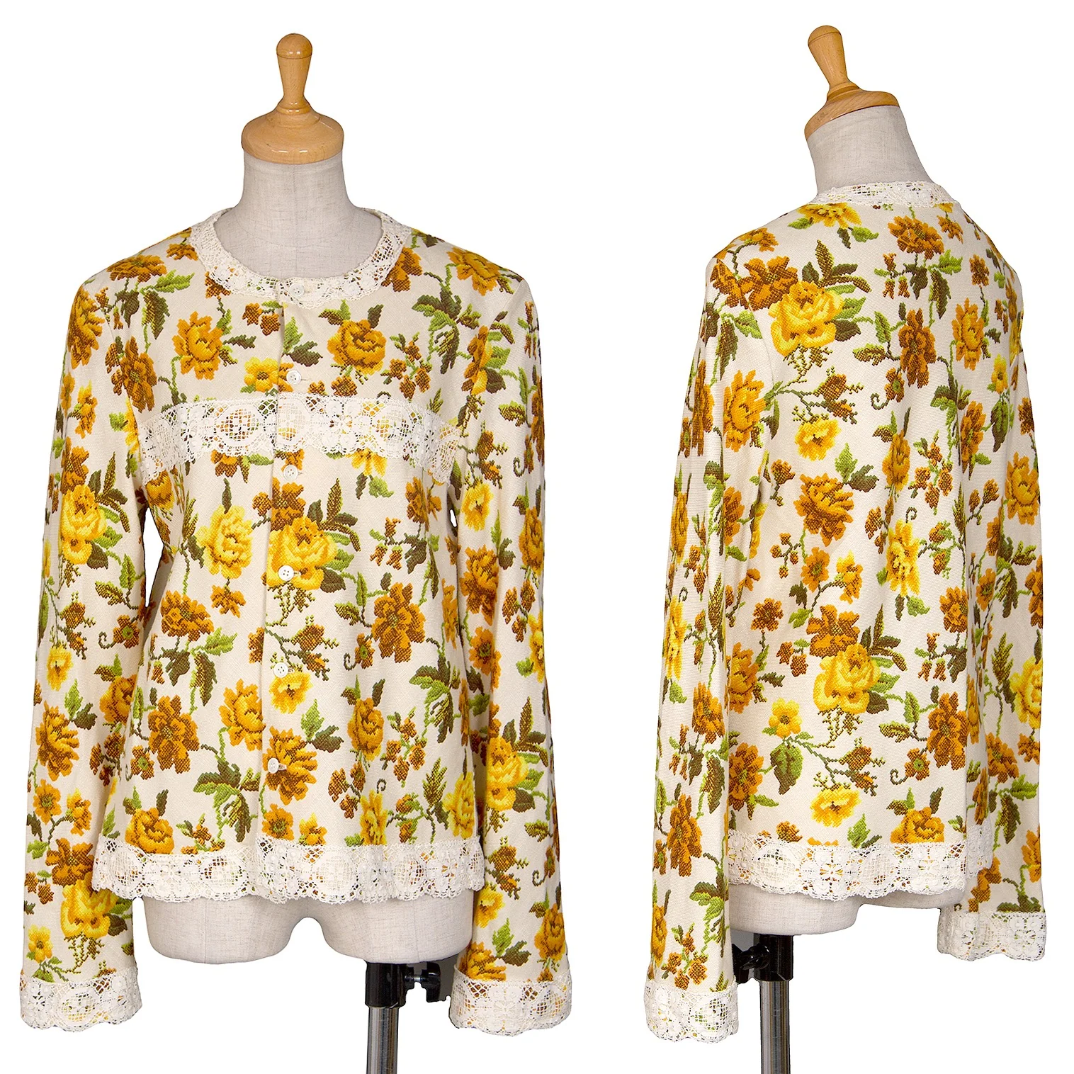 トリココムデギャルソンtricot COMME des GARCONSクロスステッチフラワープリントノーカラージャケット 黄生成りM
