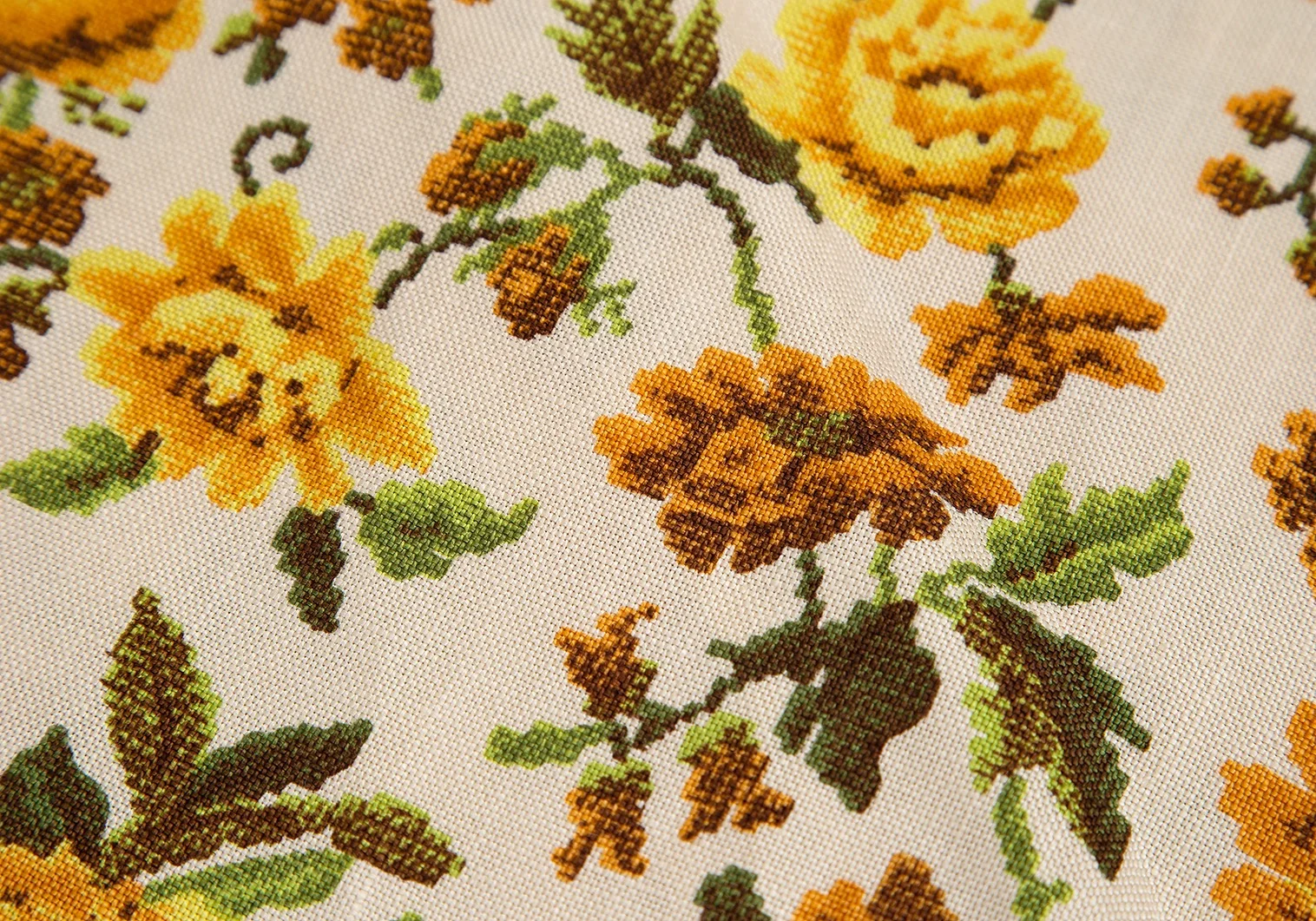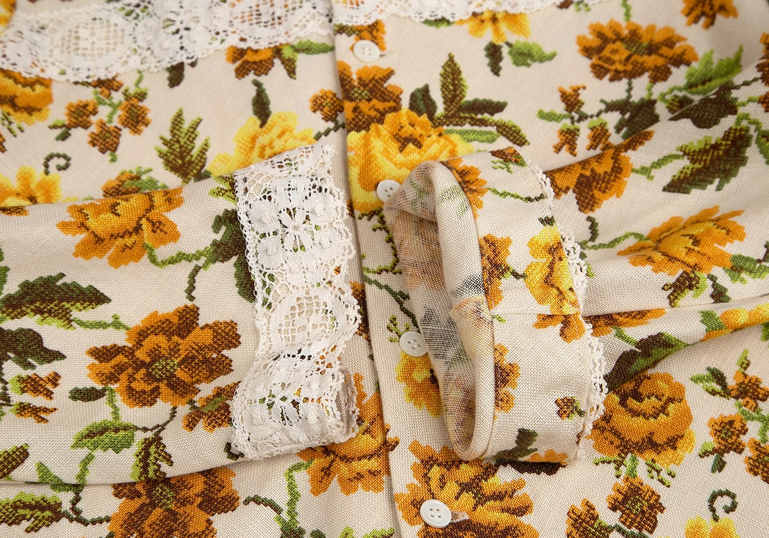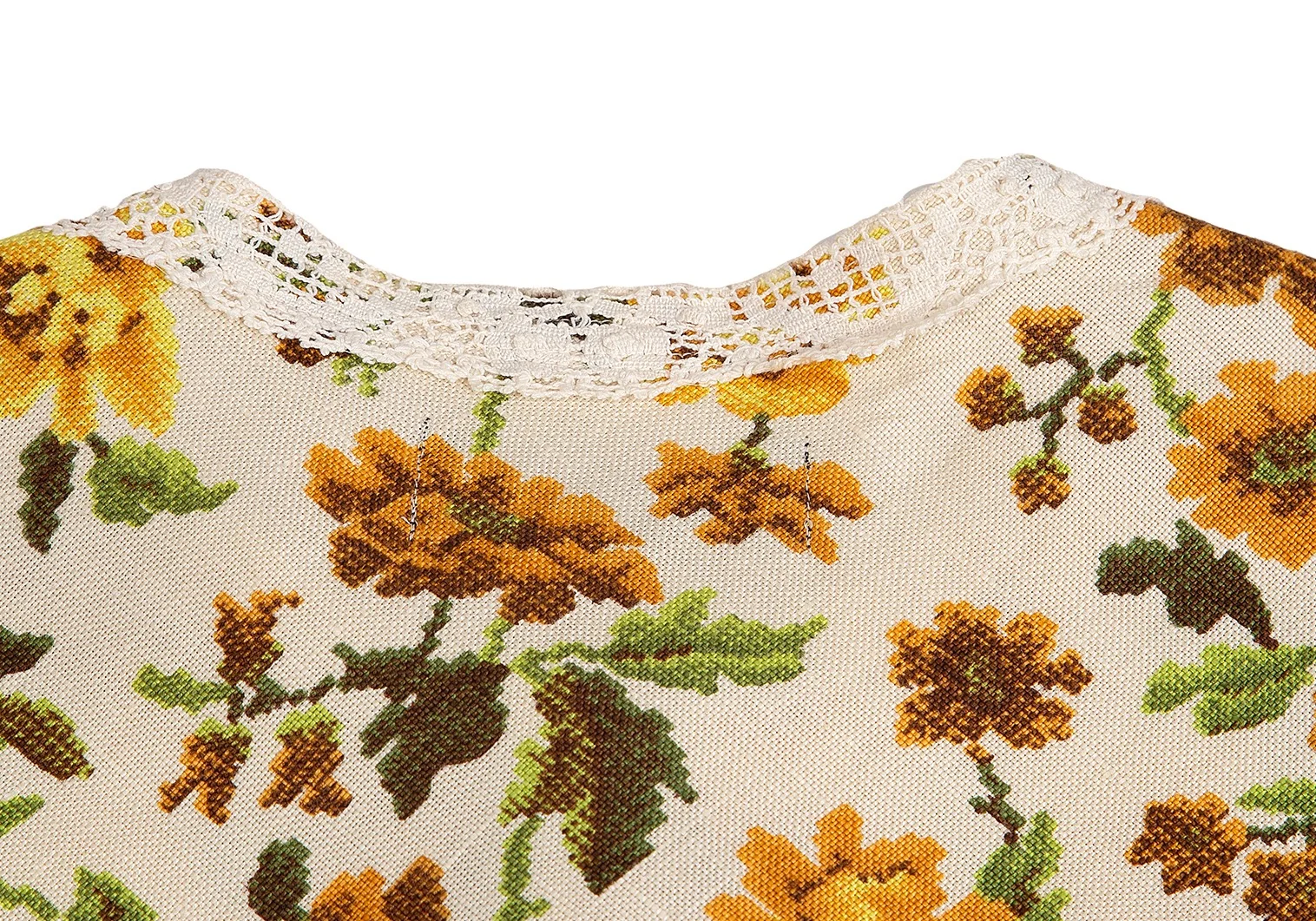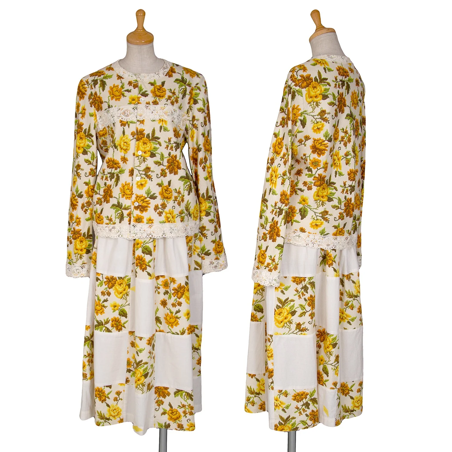 トリココムデギャルソンtricot COMME des GARCONSクロスステッチフラワープリントノーカラージャケット 黄生成りM