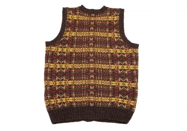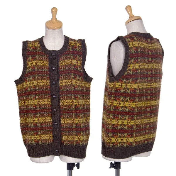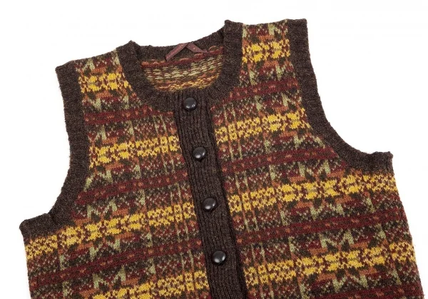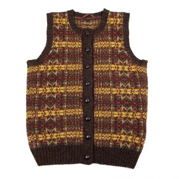マドモアゼルノンノンMademoiselle NON NON くるみボタンニットウールベスト 茶L