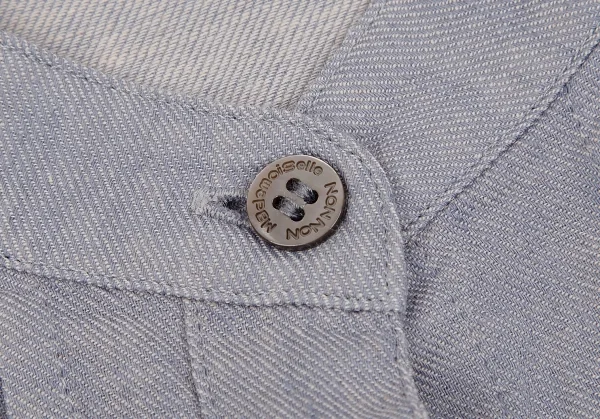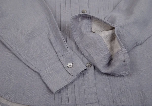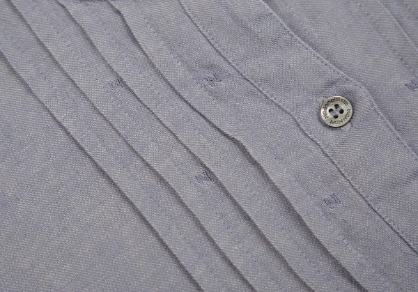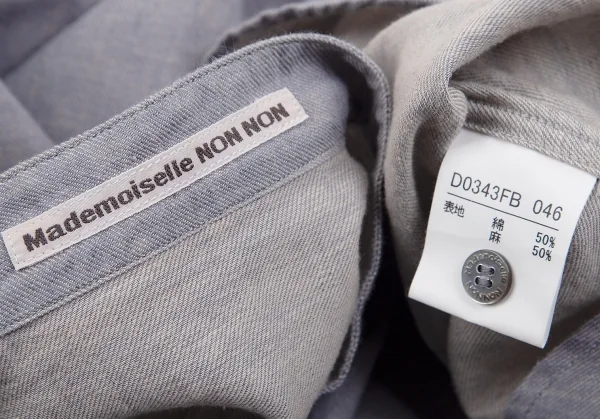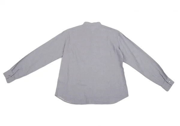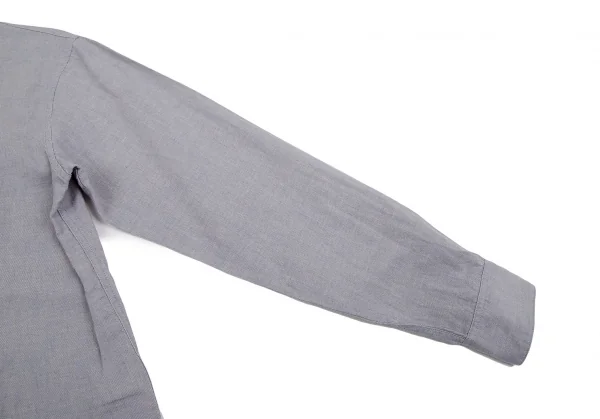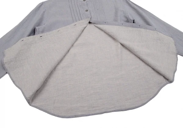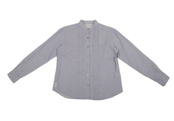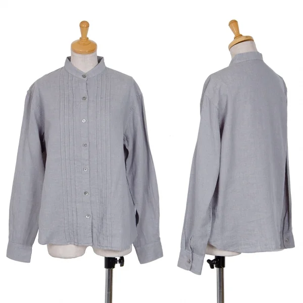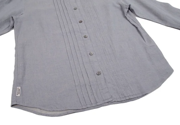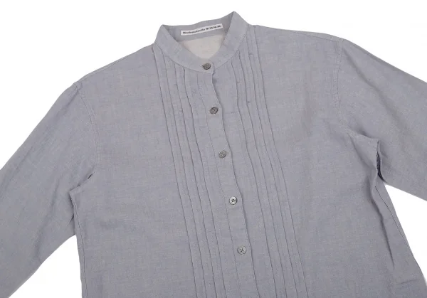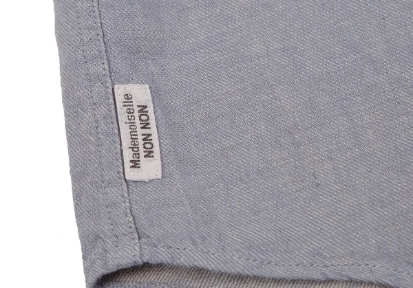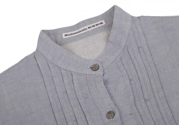マドモアゼルノンノンMademoiselle NON NON タックプリーツマオカラーコットンリネン長袖シャツ グレーブルーL位
