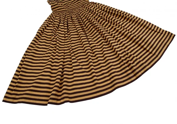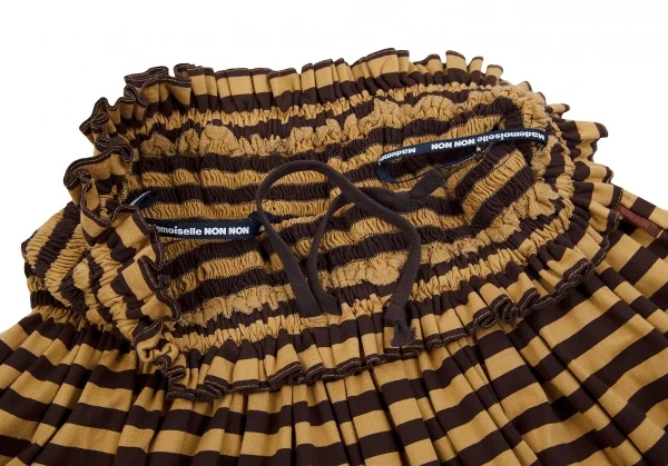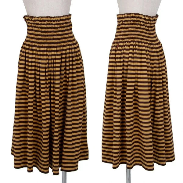 新品!マドモアゼルノンノンMademoiselle NON NON ゴムウエスト天竺ボーダースカート 茶M位