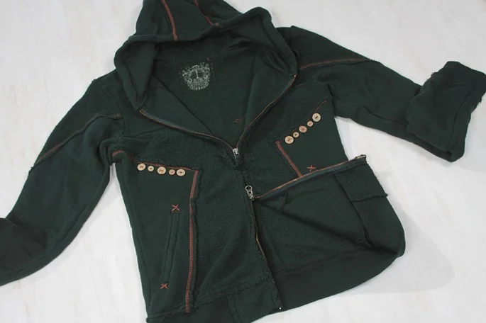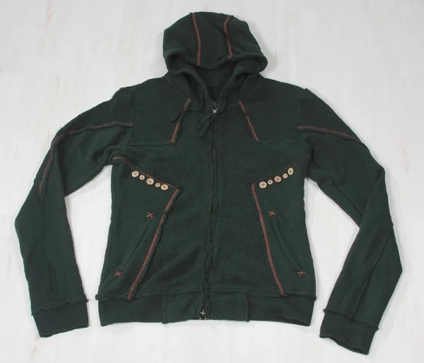 マリテフランソワジルボーMARITHE + FRANCOIS GIRBAUD スウェット切替ジップパーカー S グリーンS(レディースはL位)