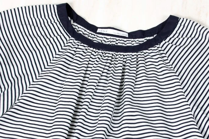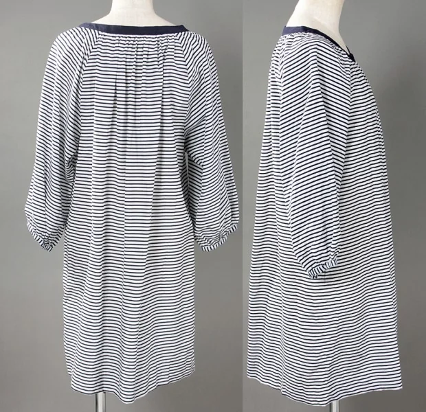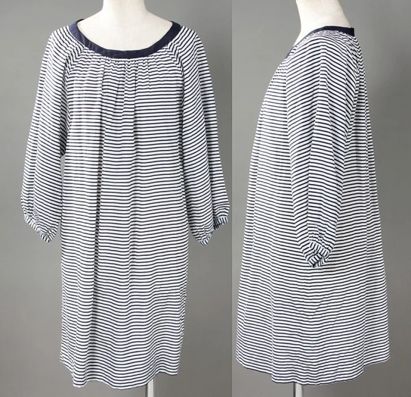 イエナIENA コットンシルクボーダーチュニック 白紺フリー