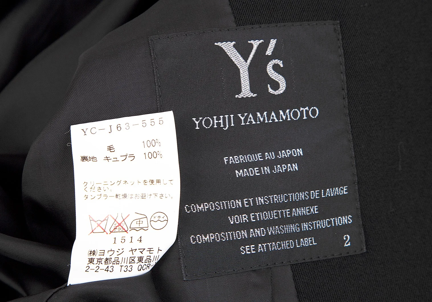 毛100% 裏地 キュプラ100%