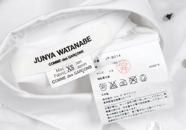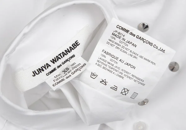 ジュンヤワタナベ コムデギャルソンJUNYA WATANABE COMME des GARCONS フロントコーンスタッズ装飾シャツ 白XS