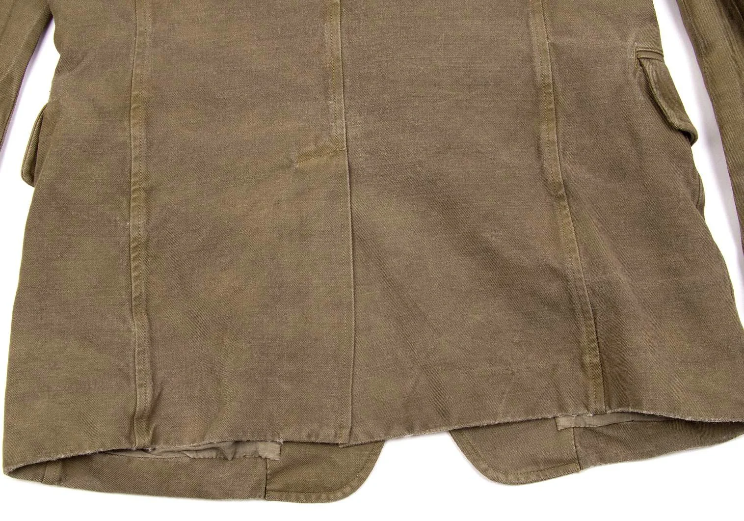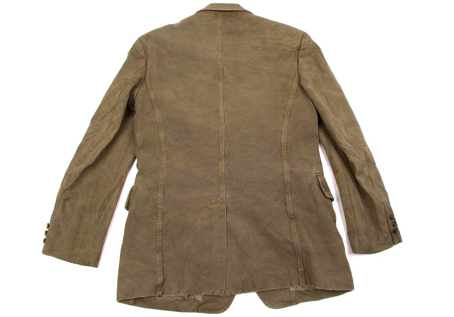 全体の色褪せやスレは加工によるものです。襟裏に薄汚れがあります(画像参照)。その他目立ったシミ、汚れ、ほつれ等なくいい状態です。クリーニング済み
