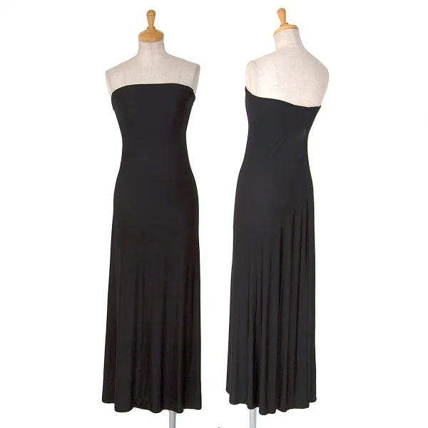 イッセイミヤケISSEY MIYAKE レーヨンポリストレッチストラップレスワンピース 黒2