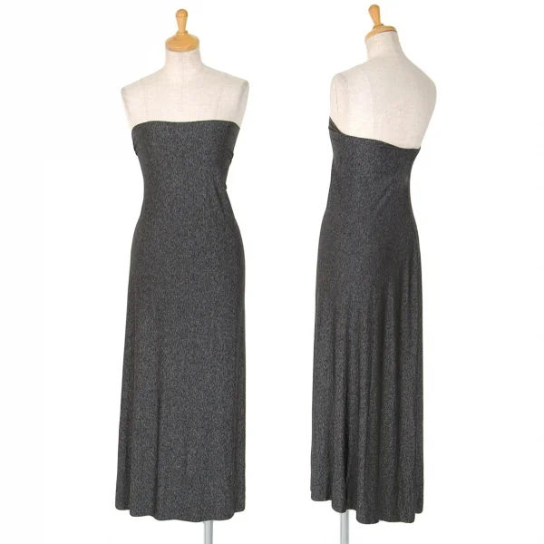 イッセイミヤケ フェットISSEY MIYAKE FETE マーブルレーヨンポリストレッチストラップレスワンピース チャコール2