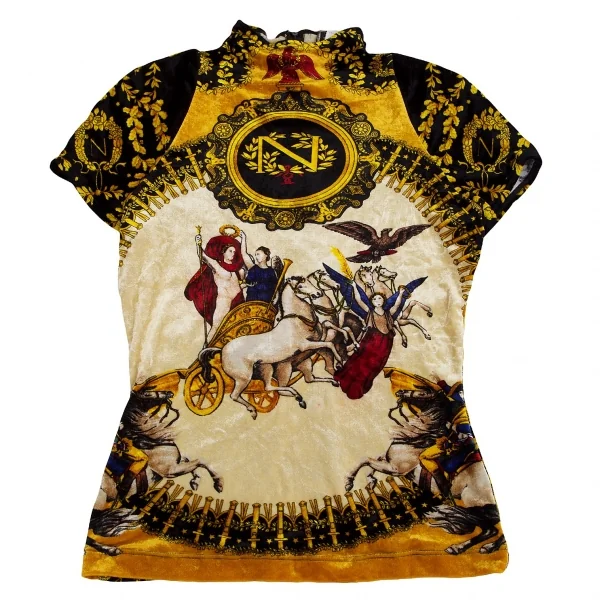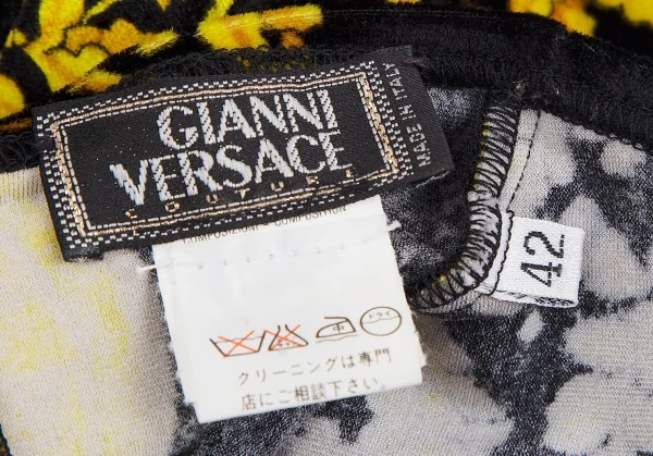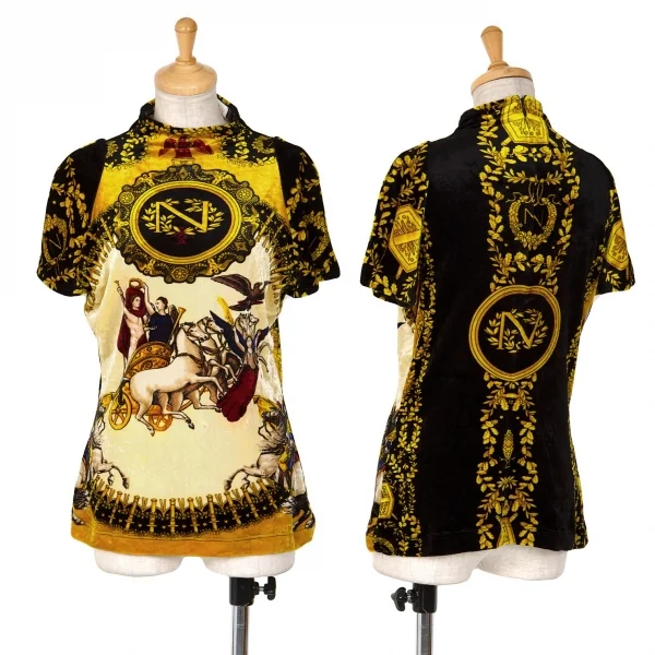 ジャンニベルサーチGianni Versace 絵画プリントハイネックベロアトップス 黒黄42