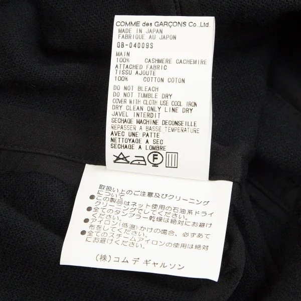 コムデギャルソンCOMME des GARCONS カシミヤ切替変形チュニック 黒S