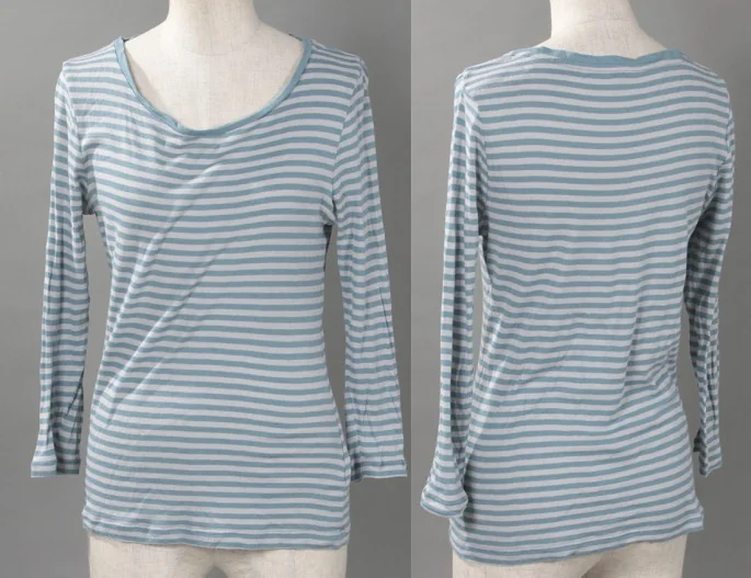 マーガレットハウエル 斜行ボーダー長袖カットソー 青M位