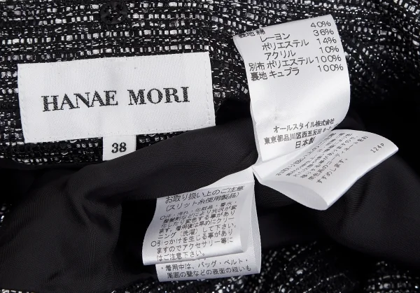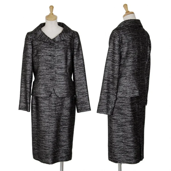 ハナエモリHANAE MORI ファンシーツイードセットアップスーツ 黒シルバーラメ38