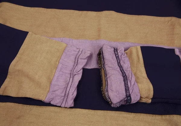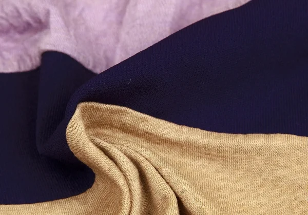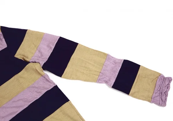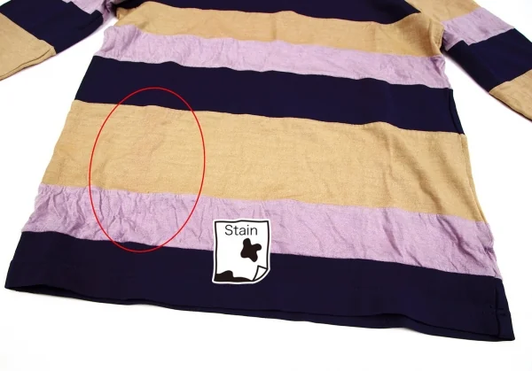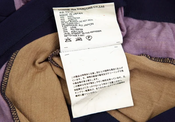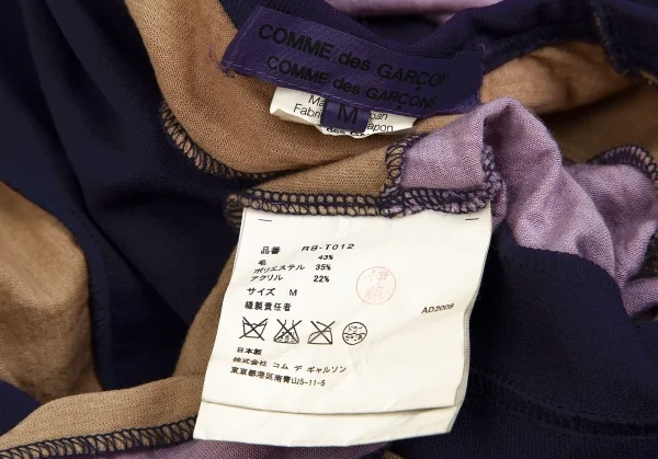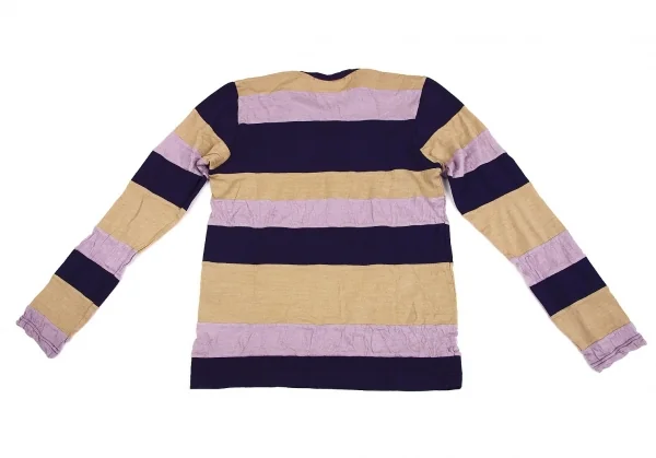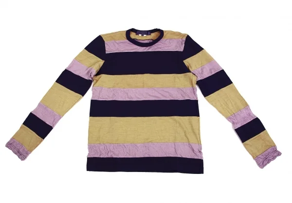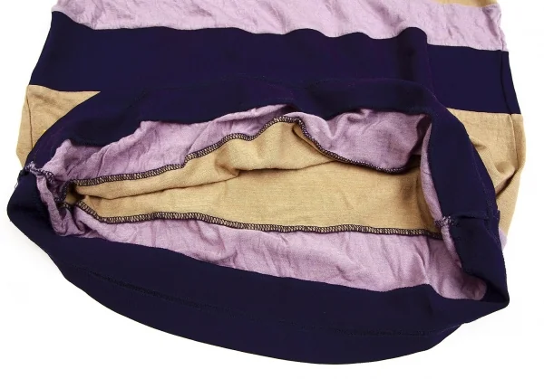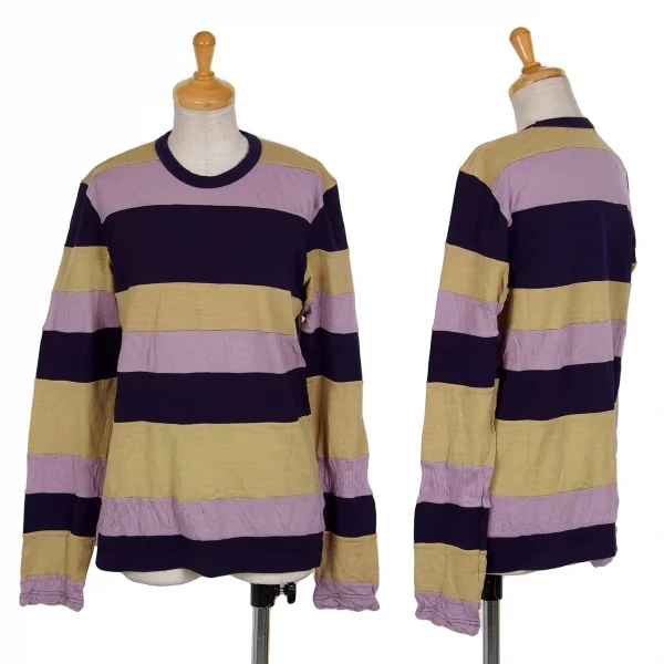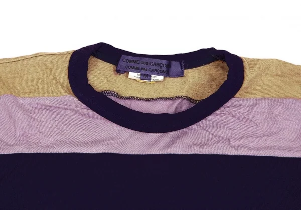 コムコム コムデギャルソンCOMME des GARCONSむら染めボーダー切替デザインカットソー 紫ベージュM
