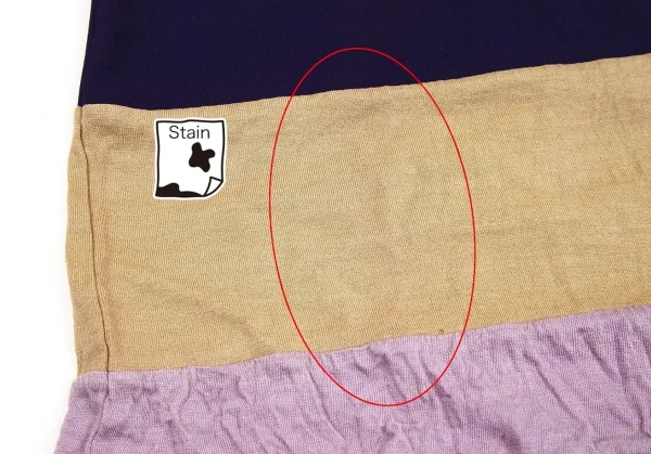 前裾に点シミ、変色(染めによる元々の加工の可能性があります。)があります(写真参照)その他目立ったシミ、汚れ、ほつれ等なくいい状態です。クリーニング済み