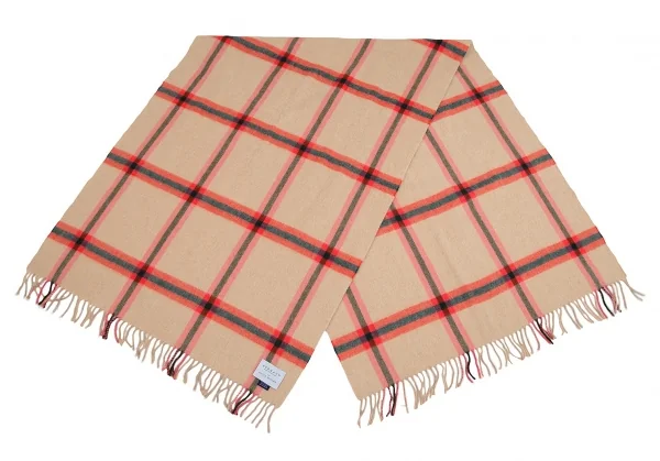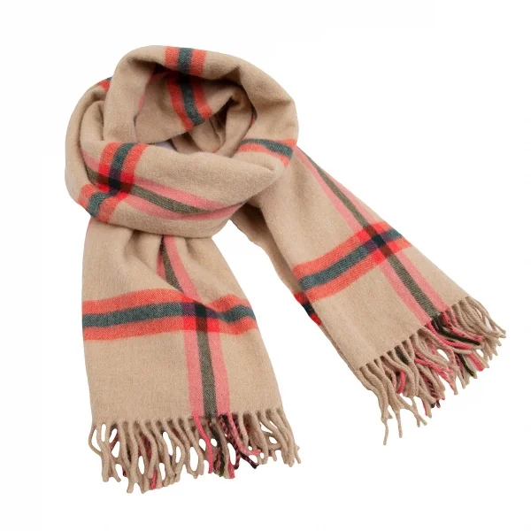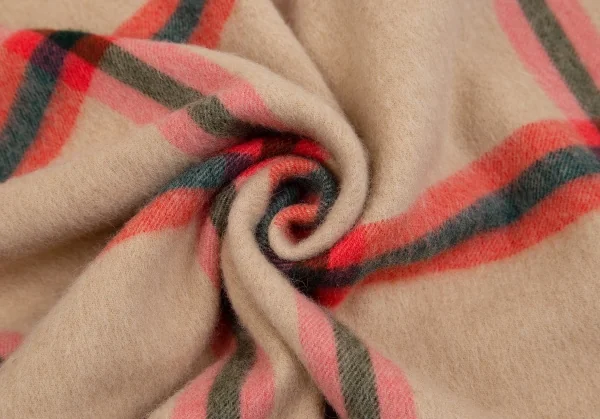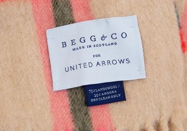 ユナイテッドアローズUNITED ARROWS チェック大判フリンジマフラー ベージュピンク