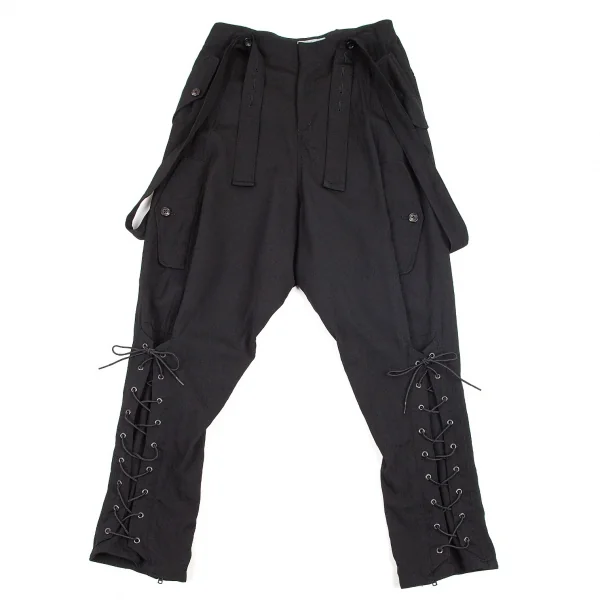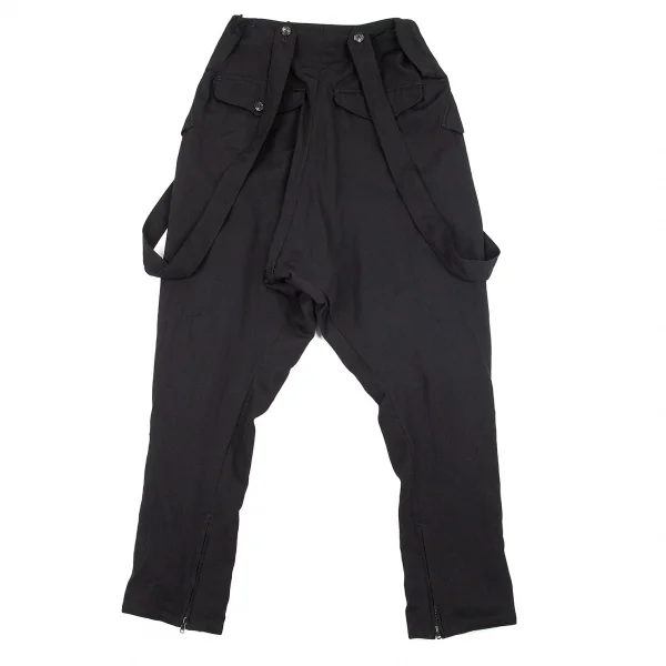 ヨウジヤマモト プールオムYohji Yamamoto POUR HOMME バンテージウールギャバサスペンダーサルエルパンツ 黒3