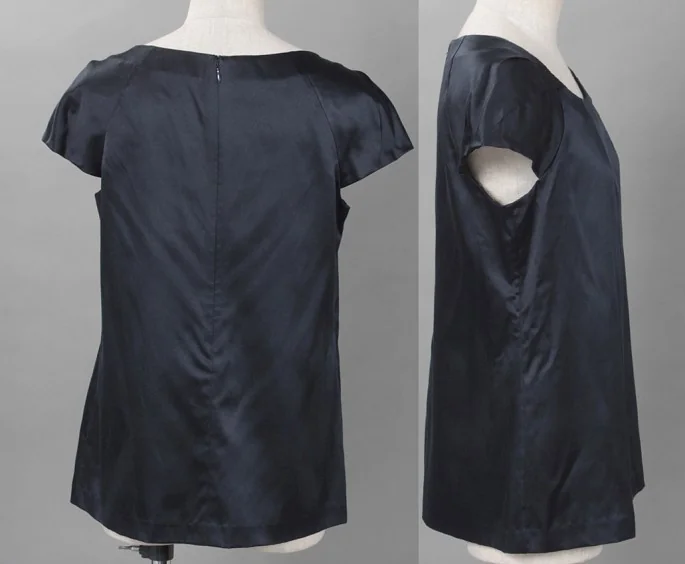 新品!セオリー theory 綿シルクフレンチスリーブブラウス 紺2
