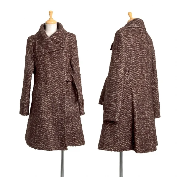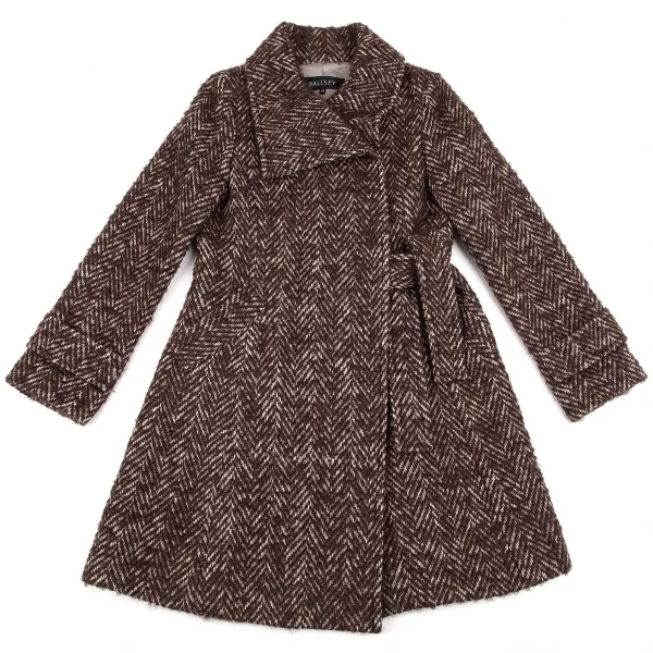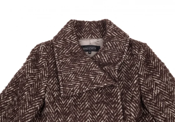 ボールジーBALLSEY ウールモヘヤヘリンボーンコート 茶38
