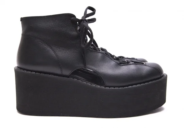 ヨウジヤマモト ファムYohji Yamamoto FEMME カッティングプラットフォームレザーサンダル 黒24.5位