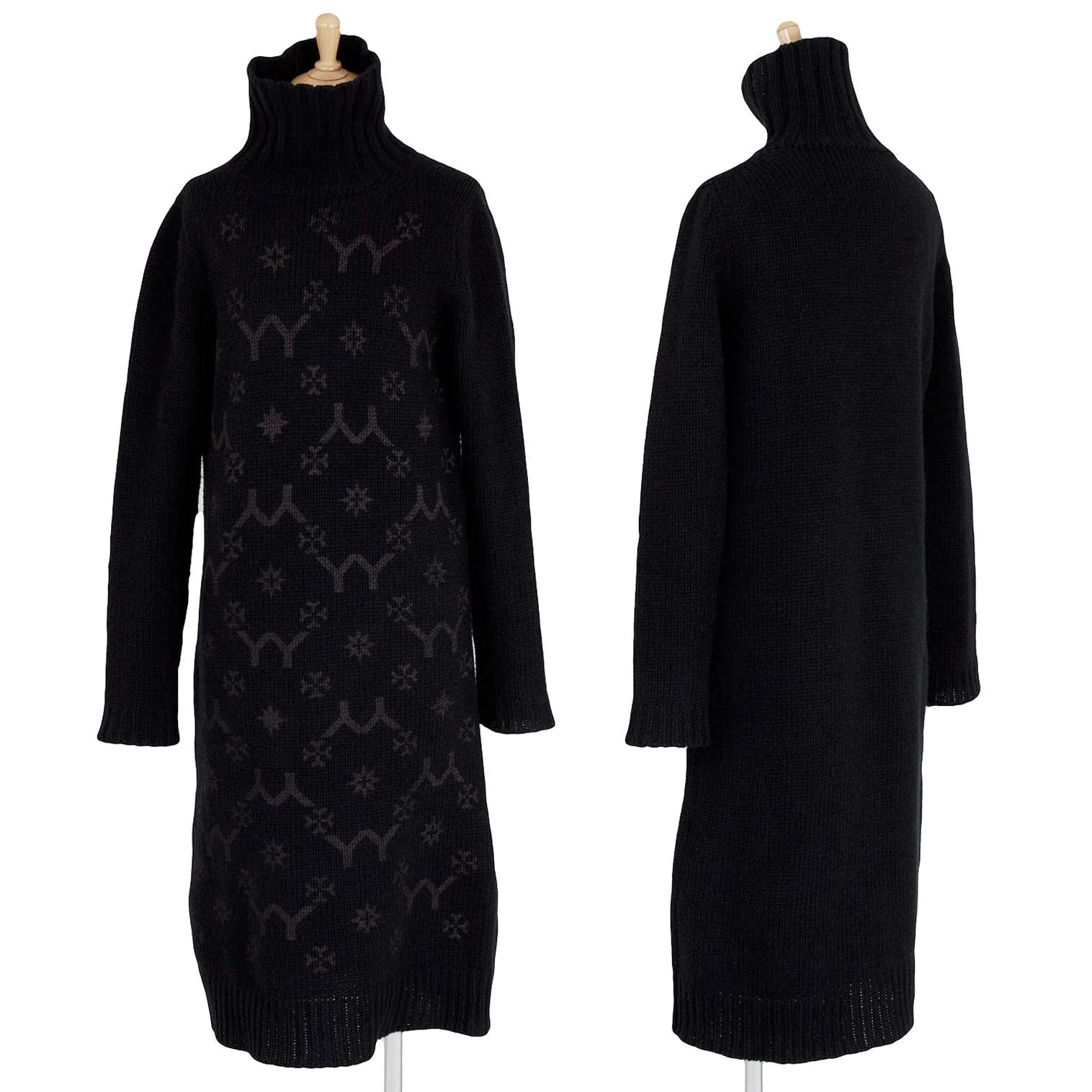 ヨウジヤマモト ファムYohji Yamamoto FEMME YYモノグラムロゴプリントタートルネックニットワンピース 黒2