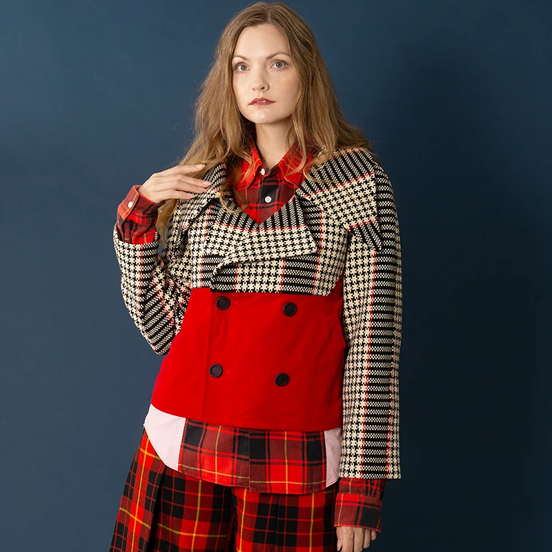 コムデギャルソンCOMME des GARCONSツイードベロア切替ジャケット 白黒赤M