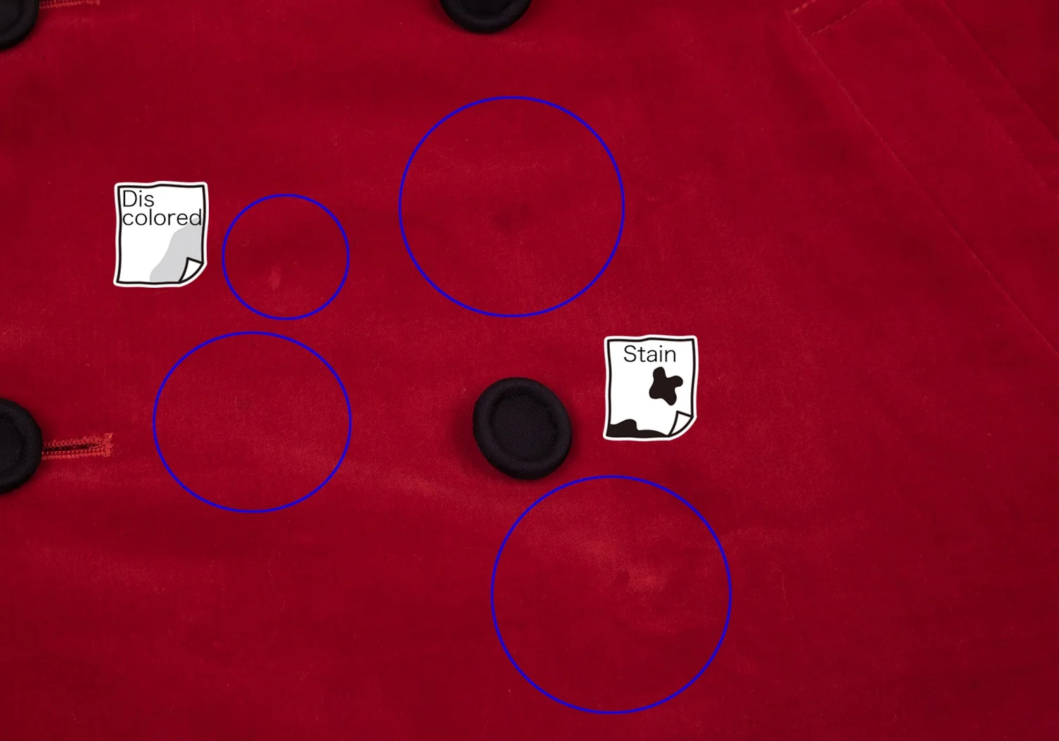 前裾・裏地・後裾にシミがあります(画像参照)。その他に目立ったシミ、汚れ、ほつれ等ありません。クリーニング済み